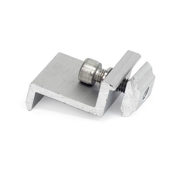 Je určen pro snadné uchycení prvního a posledního solárního panelu na hliníkovou lištu řady SC. Použijte vždy 2 držáky na každé straně panelu. Pokud máte instalováno více panelů, použijte středový držák, který se umísťuje mezi panely.