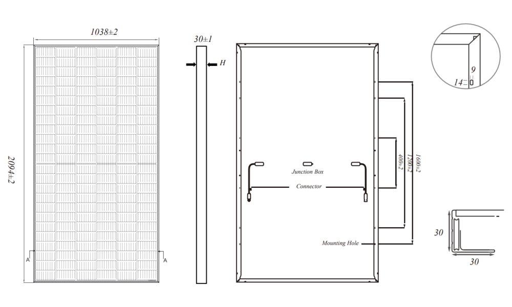 Vysoce efektivní monokrystalické panely v rozměru 2094 × 1038 ×