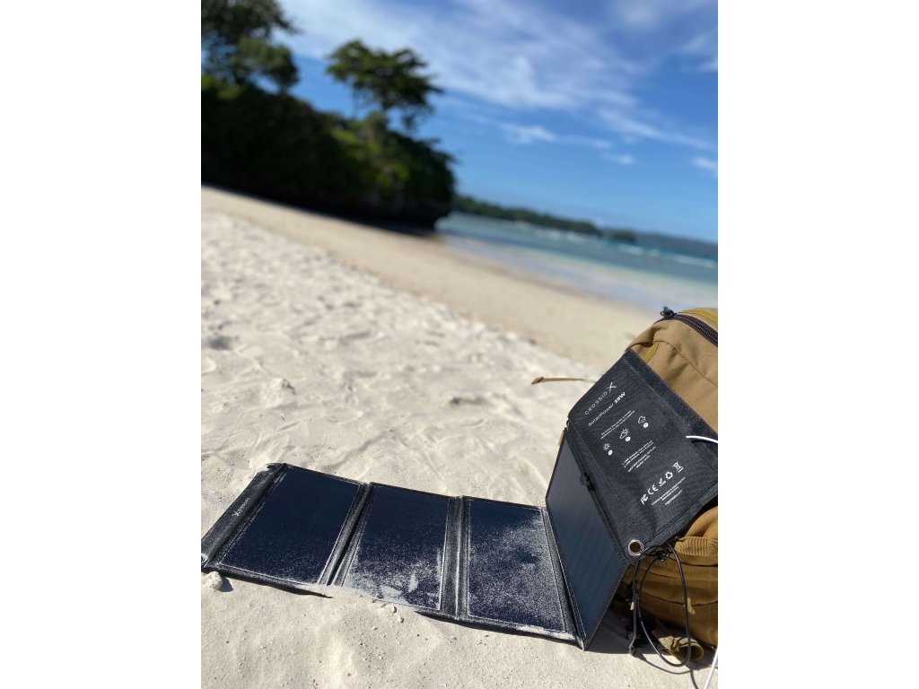 Skládá se ze 4 odolných panelů, kdy se každý z nich stará o 7 W výkonu. Crossio SolarPower má plastový potah z PET sešitý do vysoce odolného polyesterového plátna, které vydrží všechny vaše zkoušky a jen tak neprotrhnete povrch panelů. Panely jsou voděodolné do stupně IPX4 (odolnost proti stříkající vodě). USB výstupy jsou schované v kapsičce, aby se do nich nedostal prach a voda.