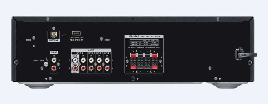 Analogový vstup zvuku (4), vstup Phono (1), výstup na sluchátka (1)