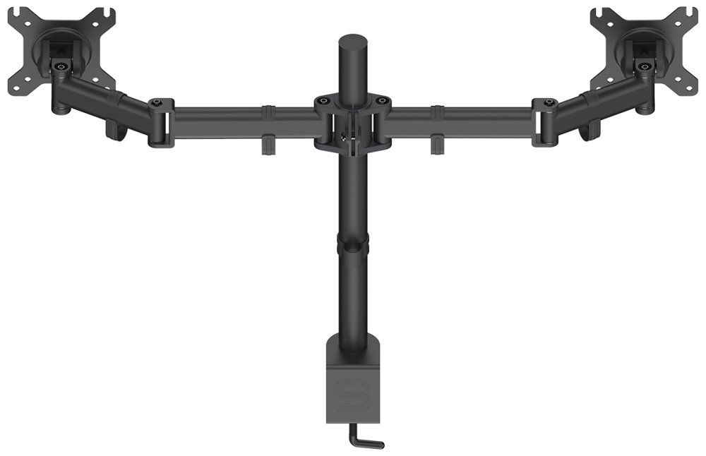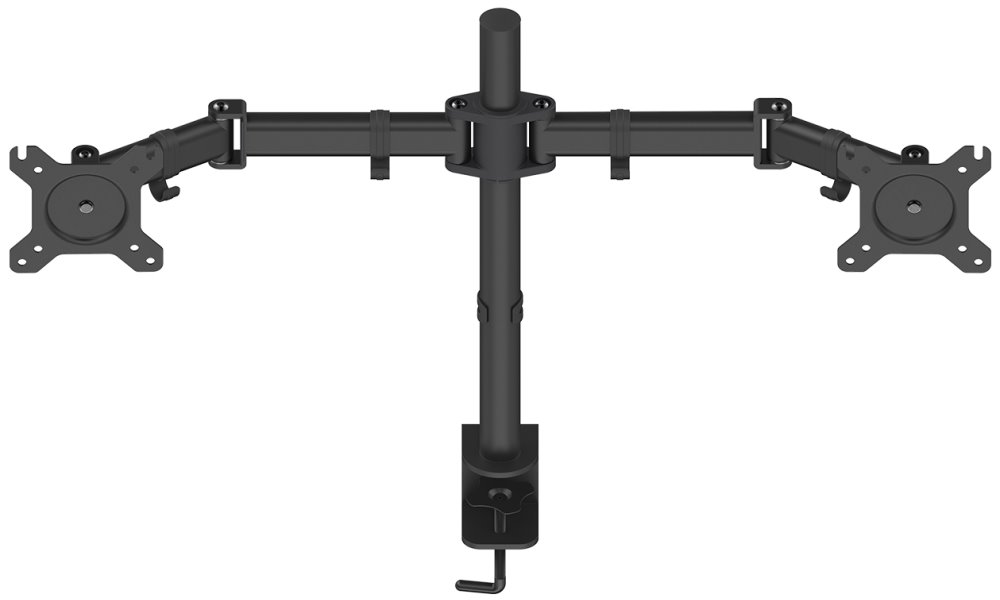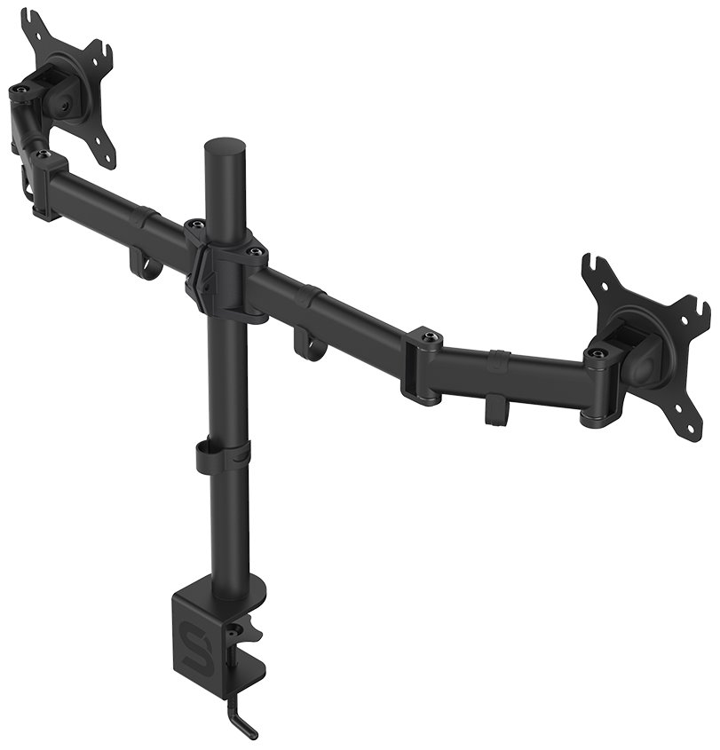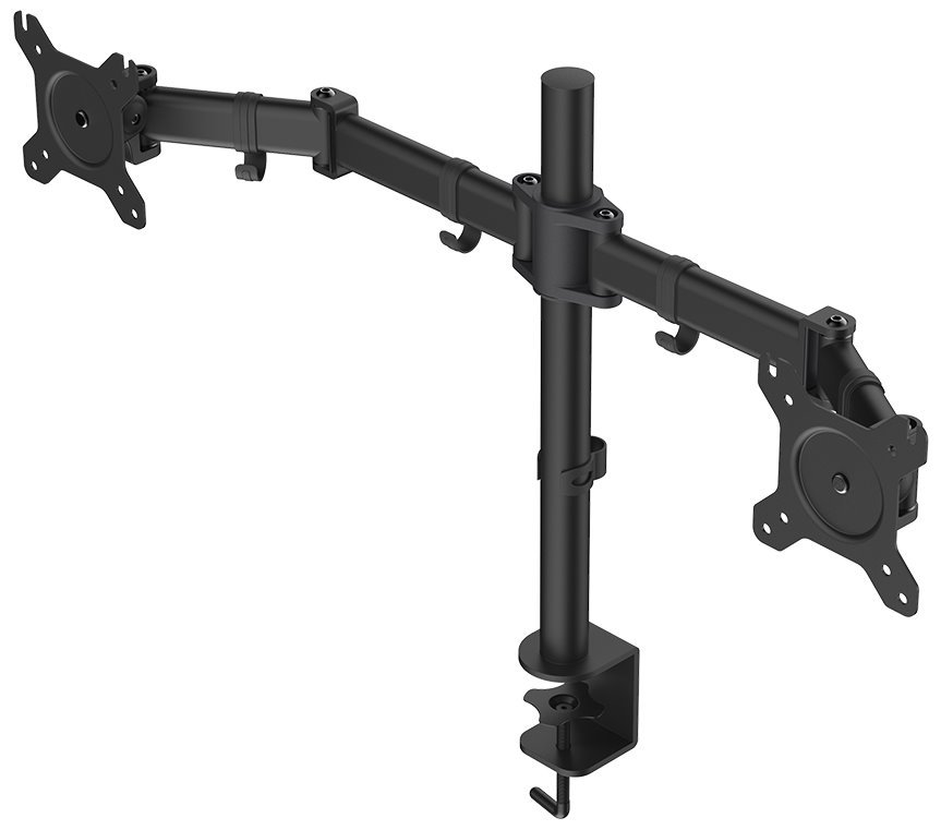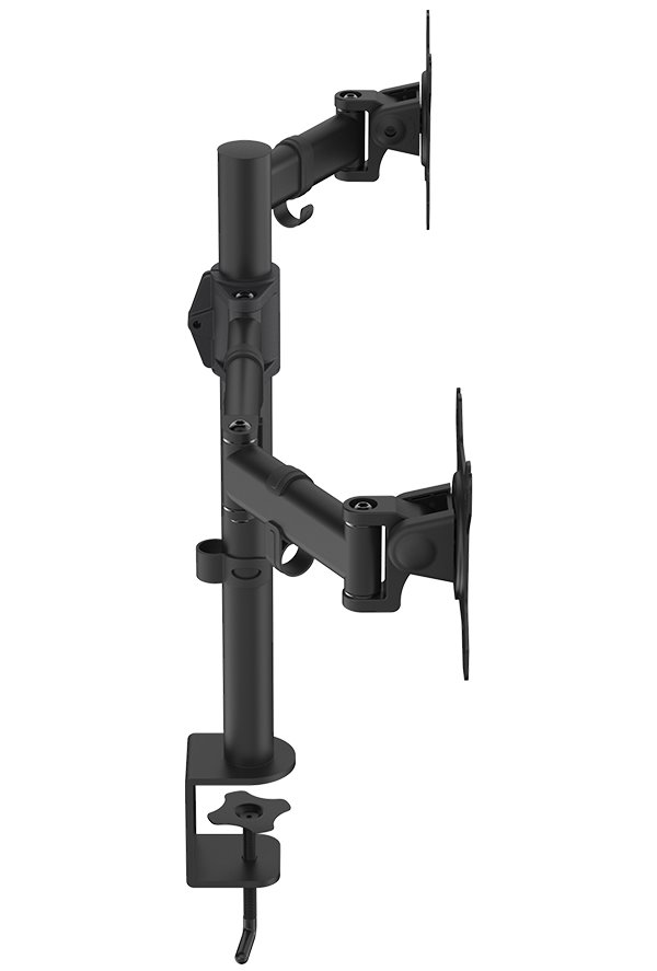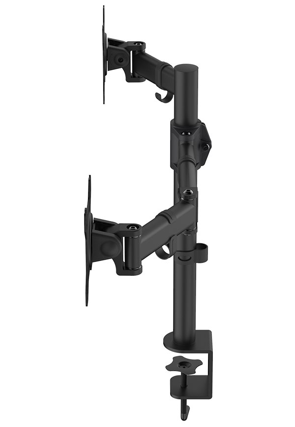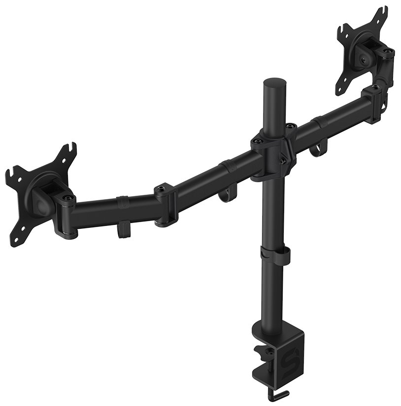 Nastavitelný držák pro dva monitory ušetří místo na pracovním stole. Je vhodný pro ploché LCD monitory o velikosti 13" až 27" a celkové hmotnosti do 16 kg. Umožňuje snadné nastavení optimální výšky, náklonu i horizontální otočení monitoru. Snadno se připevní pomocí svorky na desku stolu o tloušťce až 60 mm. Intuitivní systém správy kabeláže minimalizuje nepořádek.