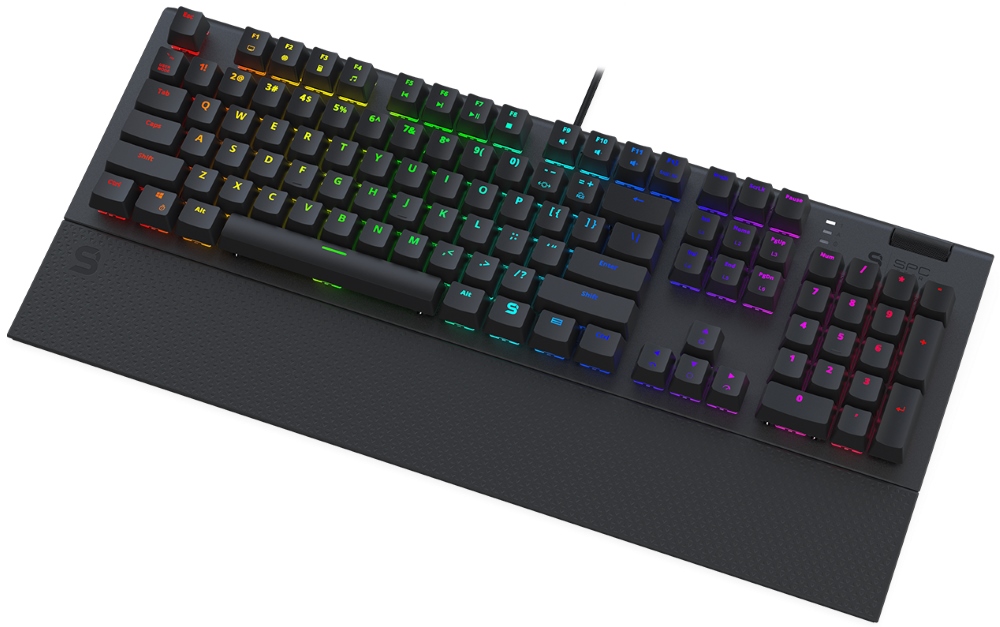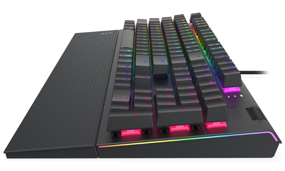 Plnohodnotná mechanická klávesnice pro každého vášnivého hráče. Díky spínačům Kailh Brown nabízí výbornou odezvu a výdrž přes 50 milionů stisků. Konstrukce klávesnice z hliníku vykazuje jen tu nejvyšší možnou odolnost a stabilitu. Špičkové pohodlí zajistí odnímatelná opěrka dlaní. Klávesy jsou RGB podsvícené a nabízí možnost vlastního nastavení. Klávesy jsou navíc také plně programovatelné, díky tomu lze klávesnici individualizovat přesně podle potřeb hráče a hrané hry. Samozřejmě nechybí ani funkce Anti-Ghosting. Připojení je realizováno skrze odnímatelný USB kabel. Součástí balení je