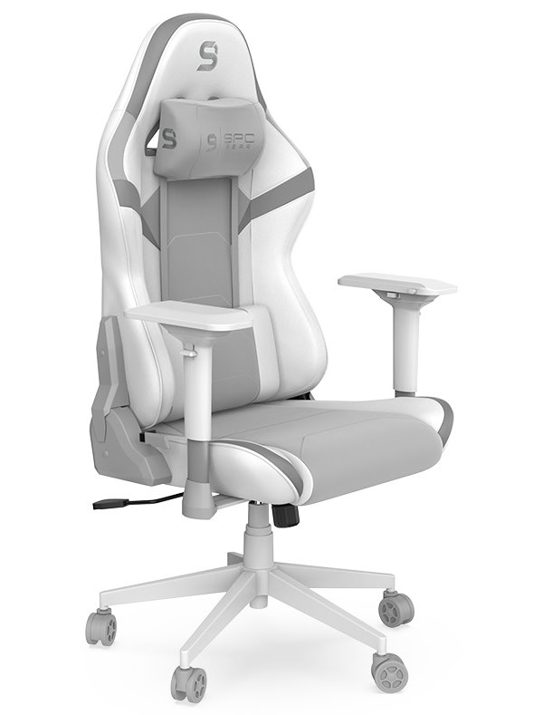 Robustní herní židle s atraktivním designem poskytuje dokonalou oporu a pohodlí i při dlouhém sezení u počítače. Je vyrobena z kvalitní syntetické kůže, která je příjemná na dotek a prodyšné textilní látky. Nastavitelná výška židle, opěrky rukou nastavitelné ve všech směrech a úhel sklonu opěradla až 170° zajistí maximální komfort. Součástí balení jsou i dva polštáře z paměťové pěny, které zajistí podporu páteře v krční a bederní části. Kolečka o průměru 60 mm jsou pokryta vrstvou odolného nylonu, který zároveň chrání podlahu před poškrábáním a snižuje hlučnost. Nosnost židle je až 120 kg.