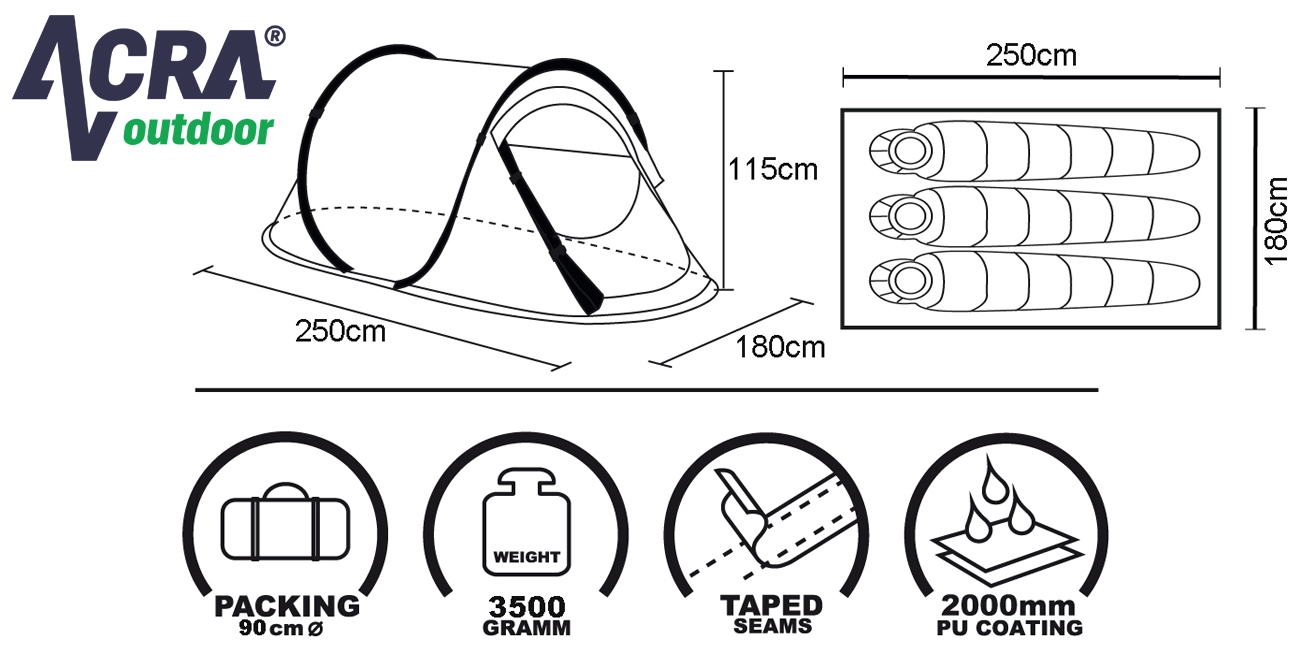 Vezměte samostavěcí stan Acra BROTHER ST01 a vydejte se kempovat. Pohodlně se v něm vyspí až 3 osoby. Snadno ho přibalíte na cestu, jelikož je skladný. Pokud plánujete jet autem, nezabere příliš místa ve vašem kufru. Největší výhodou stanu je ovšem to, že se v podstatě postaví úplně sám. Stačí, abyste vyndali z obalu navléknuté sklolaminátové pruty. Ulehčí vám práci a vy poté jen upevníte kolíky k zemi a dopnete plášť stanu kotvícími šňůrami kolem dokola. Do pěti minut máte své dočasné útočiště postavené. Návod najdete v balení.
