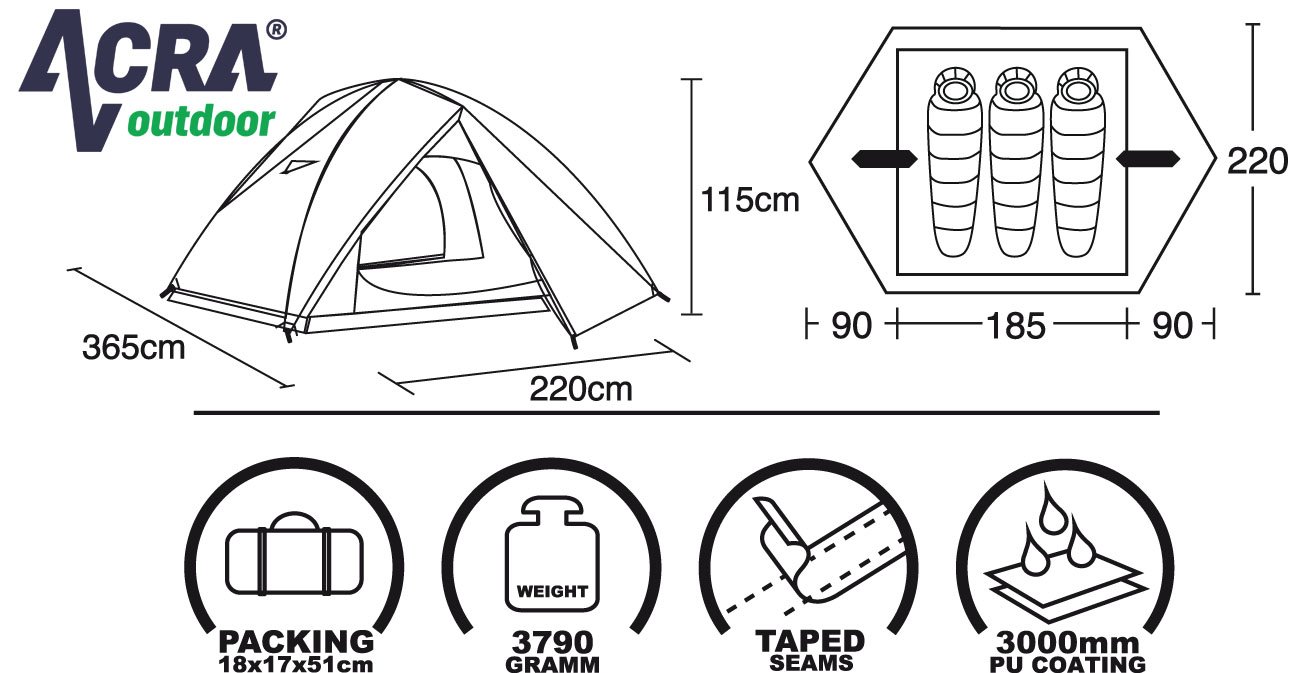 Vezměte stan Acra BROTHER ST06 a vydejte se kempovat. Pohodlně se v něm vyspí 3 osoby. Snadno ho přibalíte na cestu, jelikož je skladný. Pokud plánujete jet autem, nezabere příliš místa ve vašem kufru. Stan má závěsnou ložnici a vrchní plášť přetažený přes sklolaminátové nosné pruty.