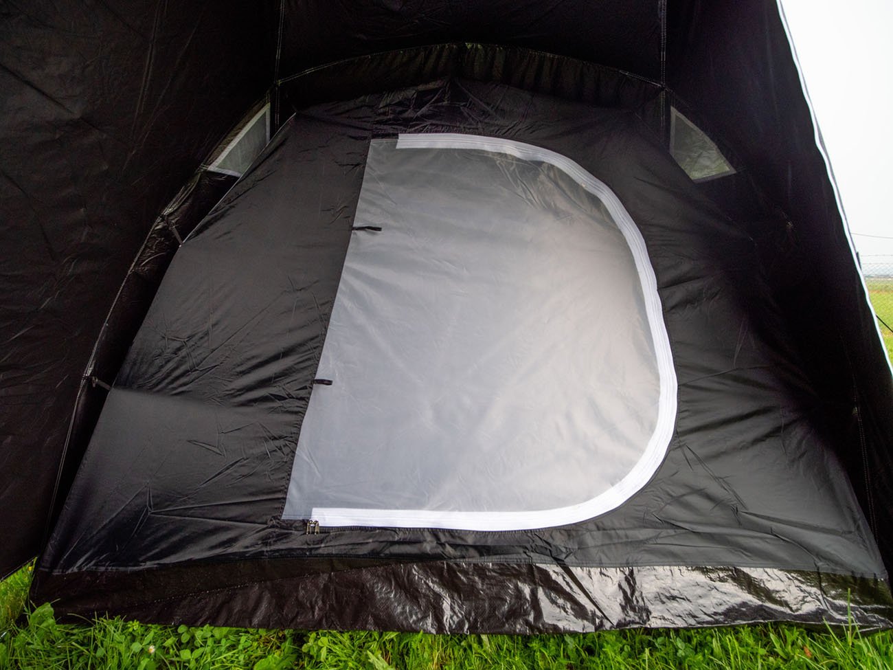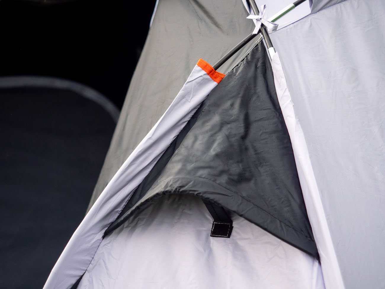 Stan sestavíte pomocí sklolaminátových skládacích prutů o průměru 9,5 mm. Některé pruty jsou kratší a mají průměr 8,5 mm. Dvě kovové tyče využijete jako podpěru pro přístřešek nad vchodem, který slouží také jako sluneční střecha. Chrání vás před svitem slunečních paprsků. Vnější plášť s podlepenými švy má navíc vysokou voděodolnost, proto vás nezaskočí ani nepříznivé počasí.