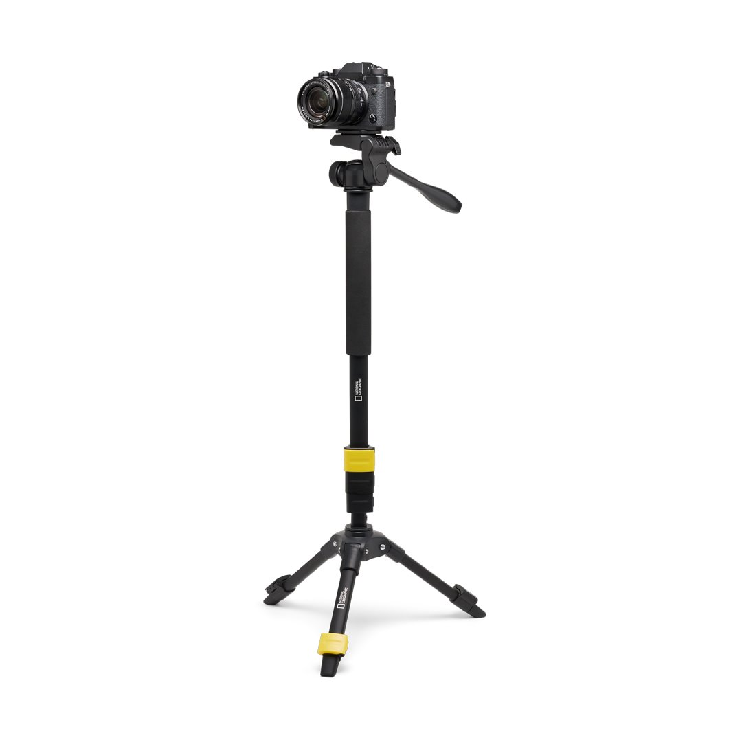 Stativ National Geographic Photo 3-in-1 s hladkou třícestnou hlavou je lehký a snadno použitelný všestranný nástroj. Má 3 funkce – samostatný tripod, monopod a stolní stativ. Využijete ho, i když patříte mezi začínající fotografy a tvůrce videí. Díky nastavitelné maximální výšce až 189,5 cm se skvěle hodí pro natáčení nad hlavou. Je kompatibilní s fotoaparáty do hmotnosti 2,5 kg, ale díky držáku ho použijete i pro svůj smartphone. Kromě držáku najdete v balení také praktické pouzdro. Navíc je vybavený prvky pro bezpečné a pohodlné zacházení.