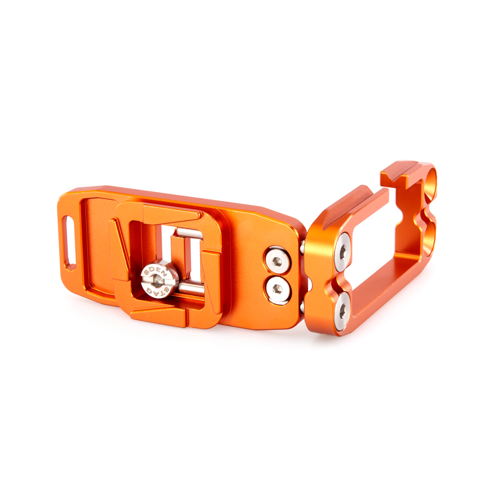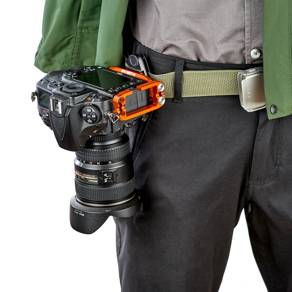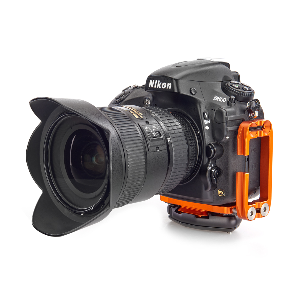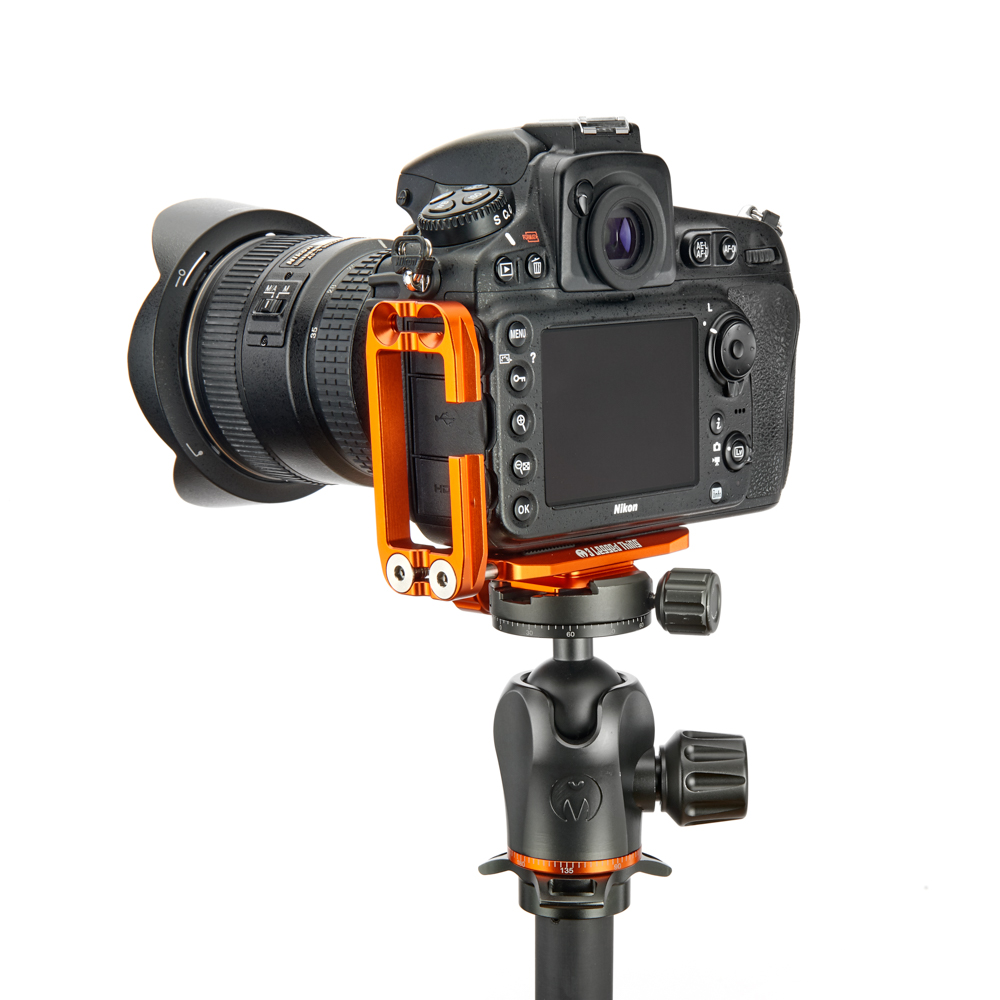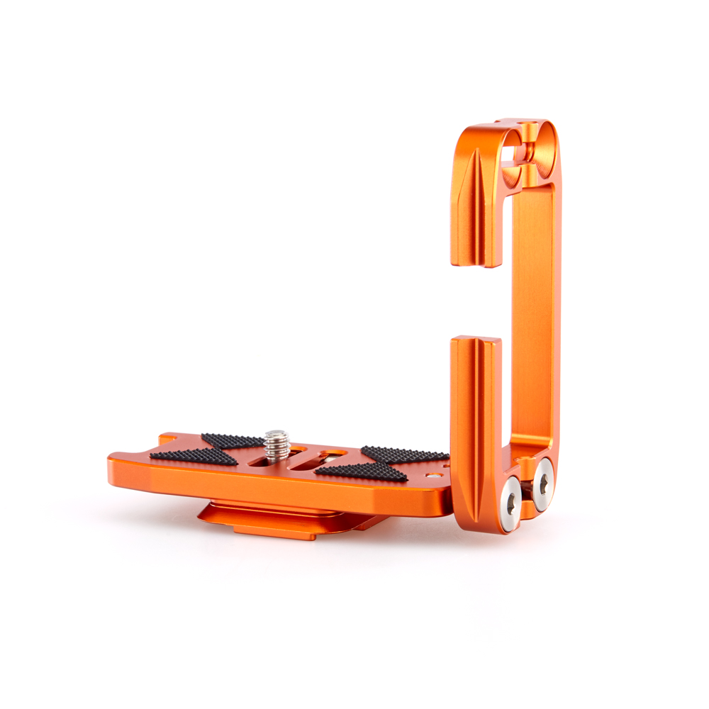 Délku držáku lze nastavit až do 128 mm pomocí 2 tuhých posuvných tyčí a šroubů z nerezové oceli, které si uživatel pomocí dodaného nástroje zafixuje na svém místě. Zadní hrana základny je zkosená pro lepší přístup k výklopnému displeji fotoaparátu. Svislá součást je obrobena tak, aby neblokovala porty fotoaparátu, a navíc může být namontována naopak, aby bylo možné připojit kabely z pravé nebo levé strany. Boční desku navíc velice snadno připevníte vzhůru nohama, čímž přetvoříte L-Bracket na kolébkový držák pro vaši kameru.