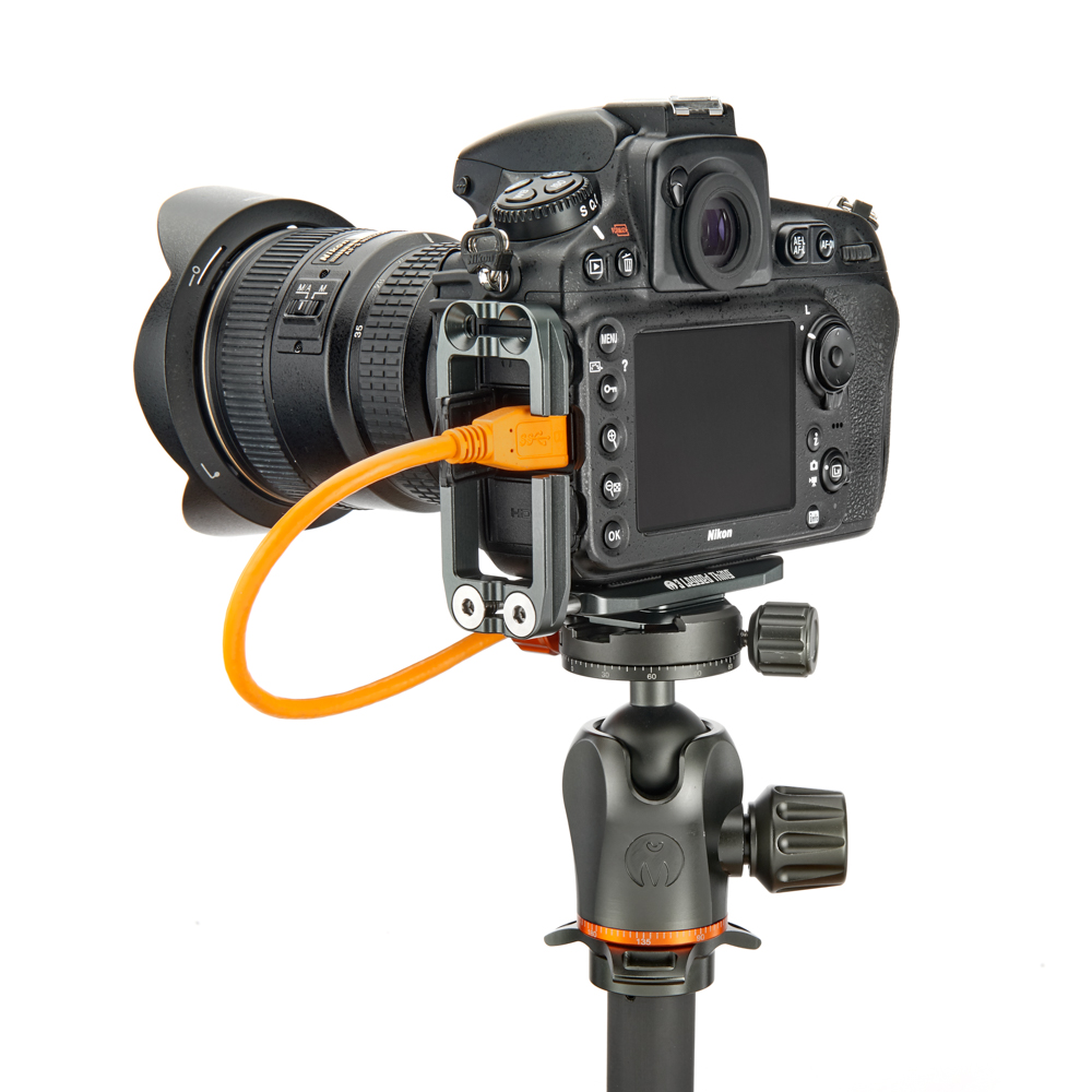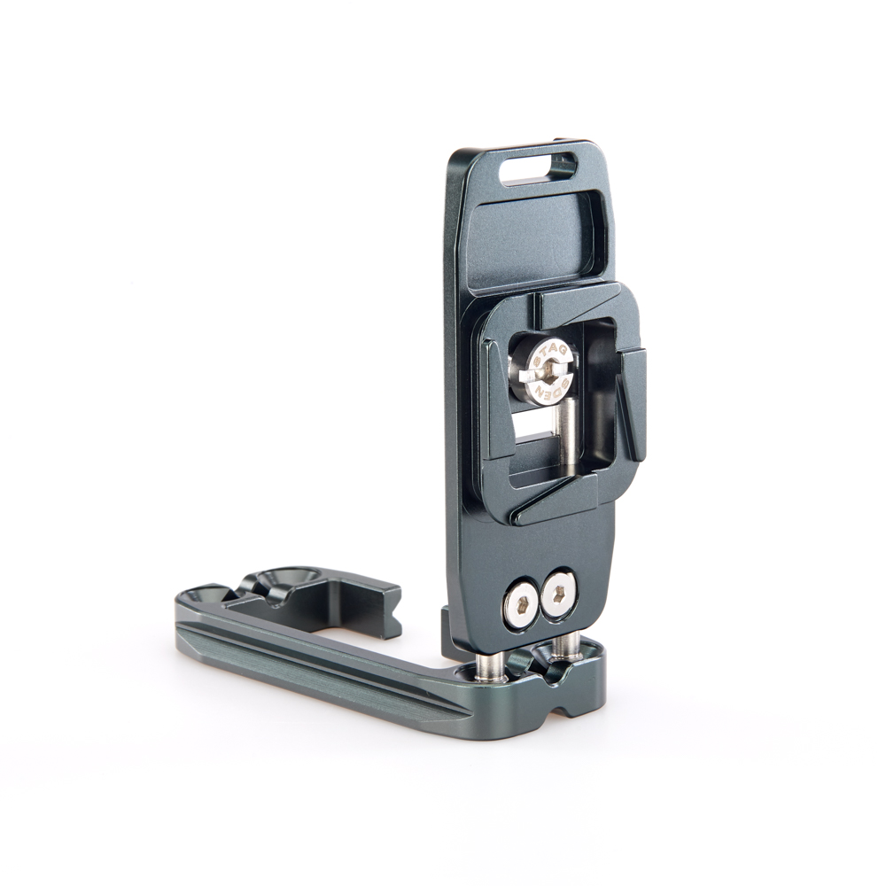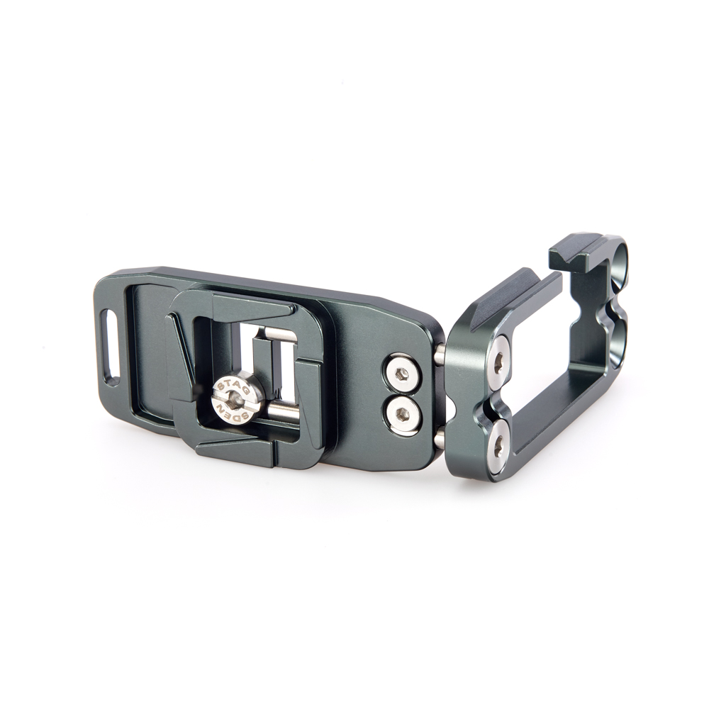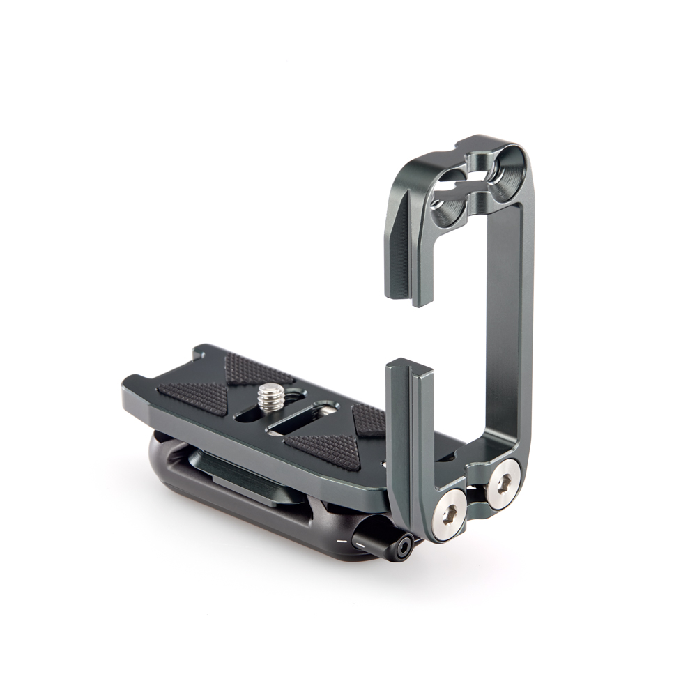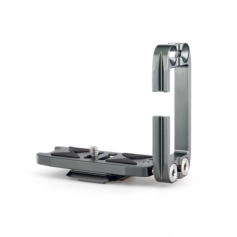 Délku držáku lze nastavit až do 128 mm pomocí 2 tuhých posuvných tyčí a šroubů z nerezové oceli, které si uživatel pomocí dodaného nástroje zafixuje na svém místě. Zadní hrana základny je zkosená pro lepší přístup k výklopnému displeji fotoaparátu. Svislá součást je obrobena tak, aby neblokovala porty fotoaparátu, a navíc může být namontována naopak, aby bylo možné připojit kabely z pravé nebo levé strany. Boční desku navíc velice snadno připevníte vzhůru nohama, čímž přetvoříte L-Bracket na kolébkový držák pro vaši kameru.