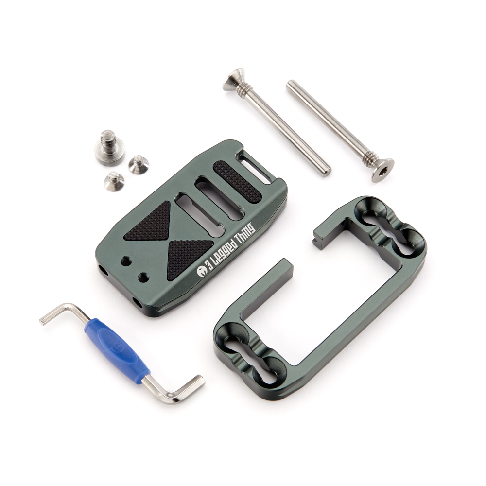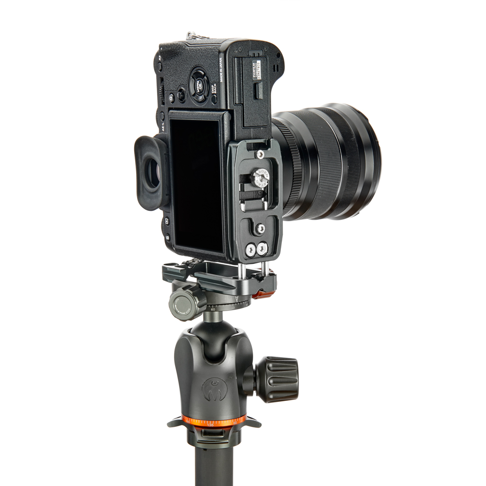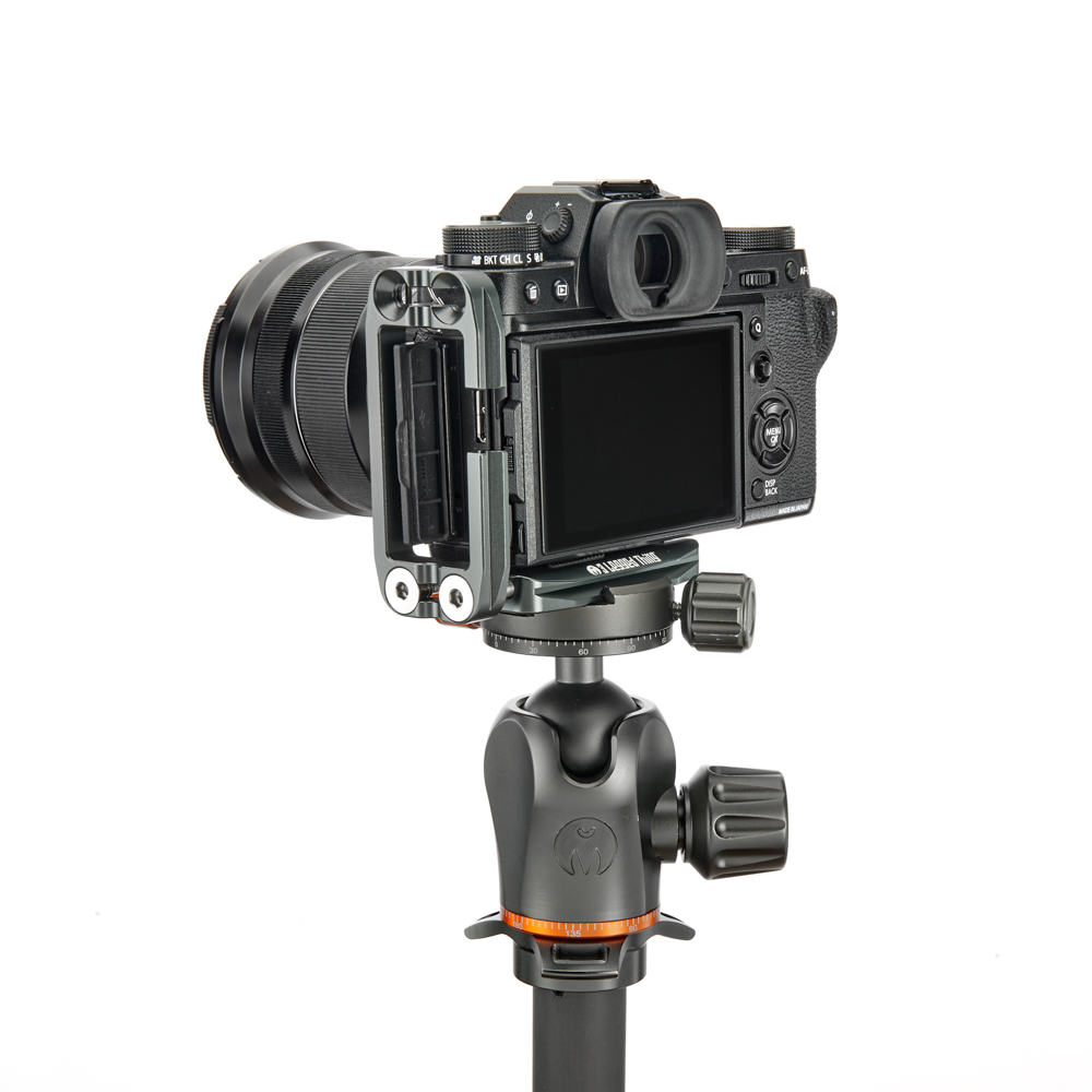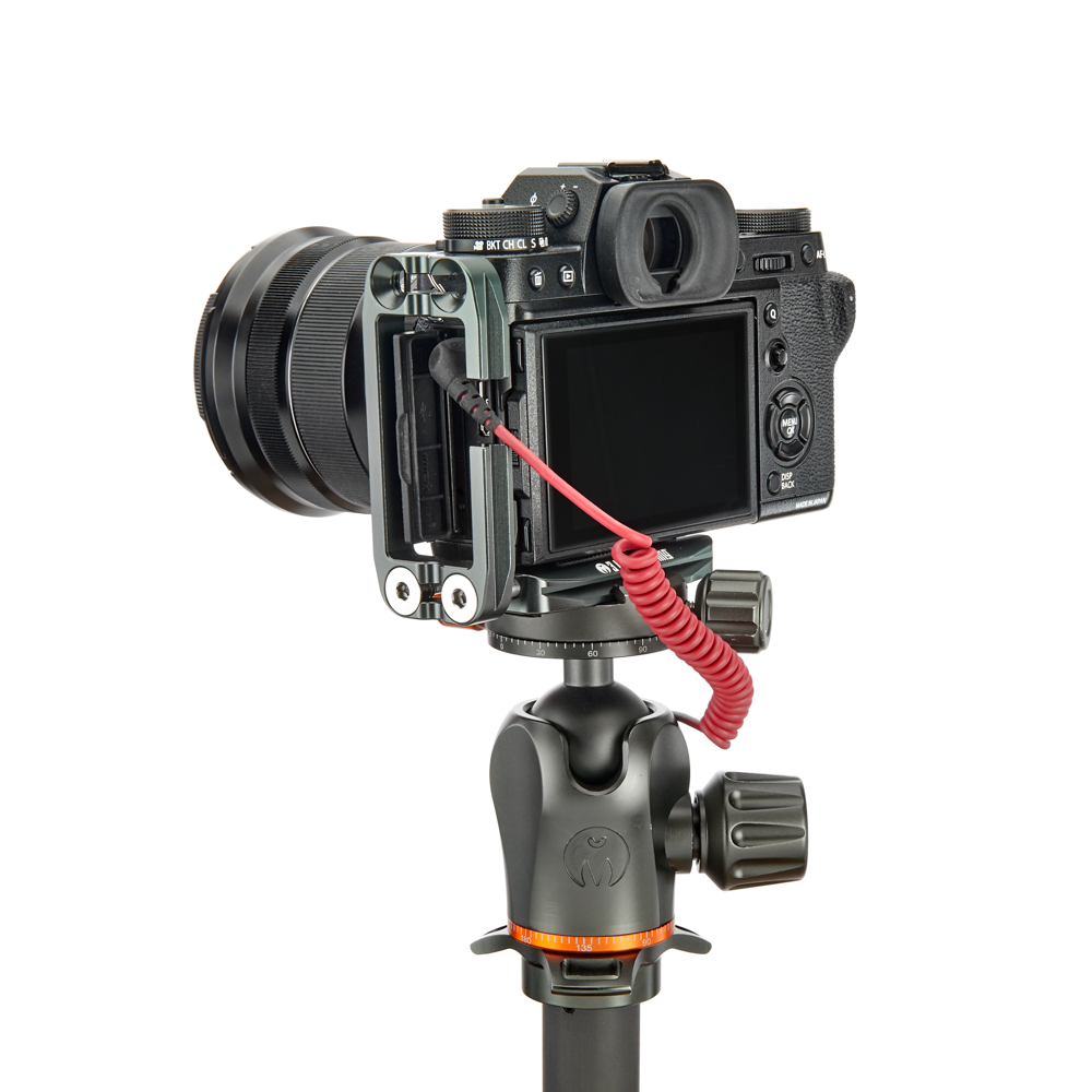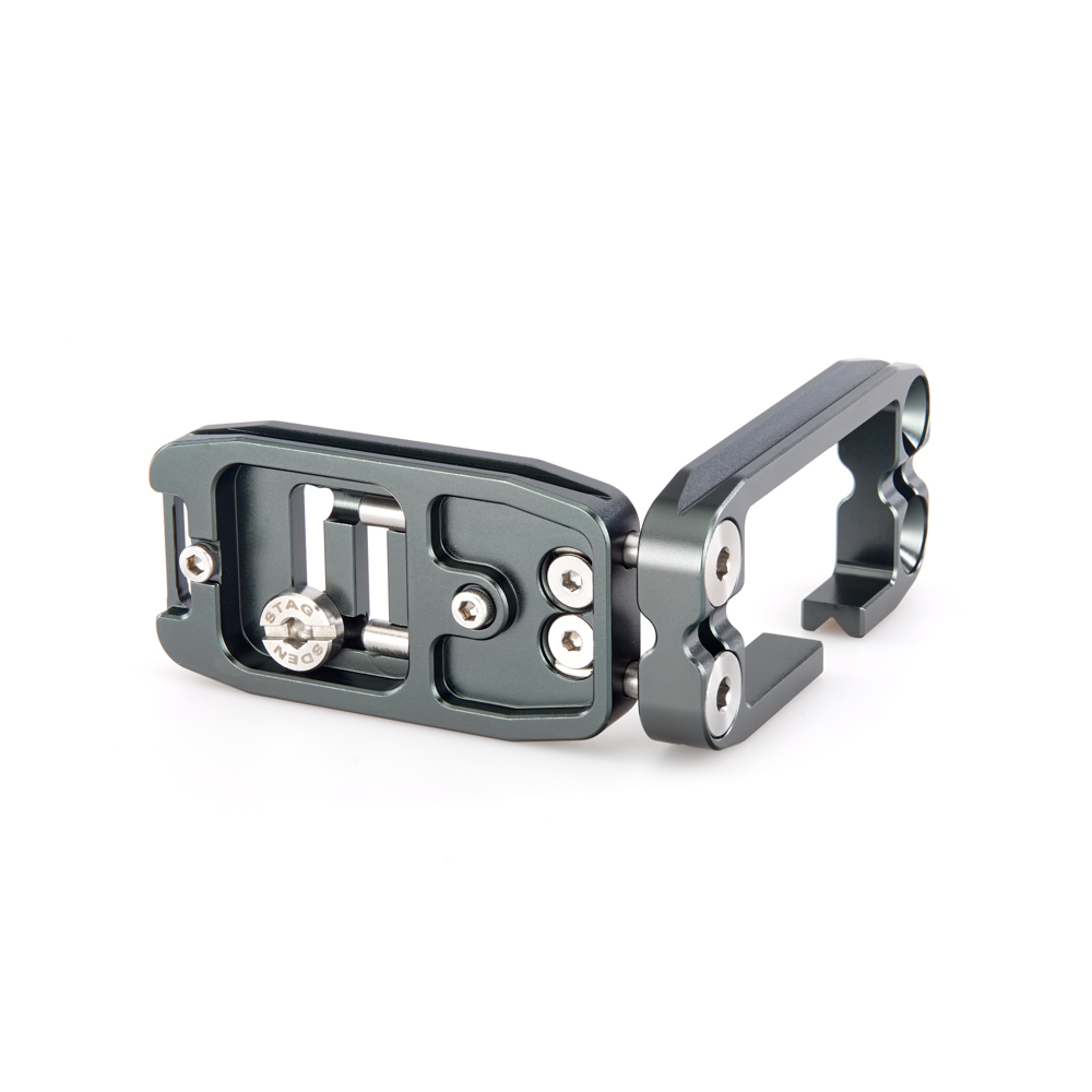 Délku držáku lze nastavit až do 113 mm pomocí 2 tuhých posuvných tyčí a šroubů z nerezové oceli, které si uživatel pomocí dodaného nástroje zafixuje na svém místě. Zadní hrana základny je zkosená pro lepší přístup k výklopnému displeji fotoaparátu. Svislá součást je obrobena tak, aby neblokovala porty fotoaparátu, a navíc může být namontována naopak, aby bylo možné připojit kabely z pravé nebo levé strany. Boční desku navíc velice snadno připevníte vzhůru nohama, čímž přetvoříte L-Bracket na kolébkový držák pro vaši kameru.