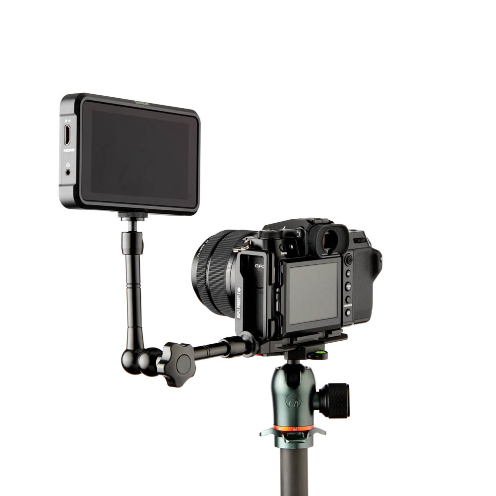 Připojte monitor nebo třeba mikrofon pomocí dvojitého upevňovacího bodu 1/4"-20 a 3/8"-16, který umožní spojení vašeho příslušenství s kamerou. K bočním portům se dostanete otevřenou stranou držáku. Zároveň budete mít snadný přístup k baterii a k paměťové kartě. Perfektně tvarované Arca-Swiss destičky se bezpečně upevní k hlavě stativu a drží na místě. Na stativu najdete i drážku pro připevnění popruhu nebo kotvy pro praktické přenášení.