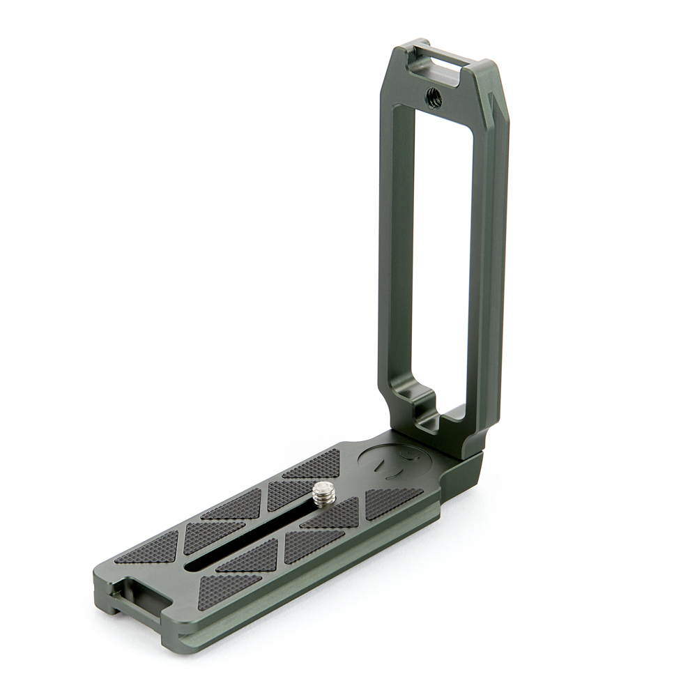 Délka držáku činí 120 mm a zadní hrana základny je zkosená pro lepší přístup k výklopnému displeji a k dalším důležitým funkcím fotoaparátu. Svislá součást je obrobena tak, aby neblokovala porty či bateriová dvířka fotoaparátu, a navíc může být namontována naopak, aby bylo možné připojit kabely z pravé nebo levé strany. Boční desku navíc velice snadno připevníte vzhůru nohama, čímž přetvoříte L-Bracket na kolébkový držák pro vaši kameru.