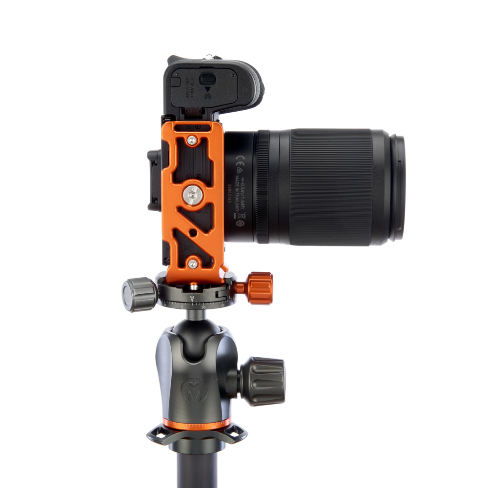 Celohliníkový stativový držák 3 Legged Thing Zayla je speciálně určený pro bezzrcadlový fotoaparát Nikon Z50, který připojíte pomocí 1/4″ závitu. Lze jej však použít i s dalšími modely od různých předních značek, jako je kupříkladu Fujifilm X-S10, Sony A7R II, Olympus E-M1 II, Panasonic G95 a mnoho dalších. Primárně se používá k rychlému přechodu z ležatých snímků na stojaté při zachování ohniskové roviny a horizontu.