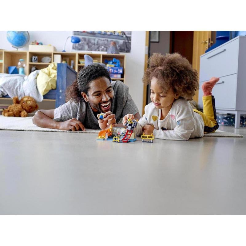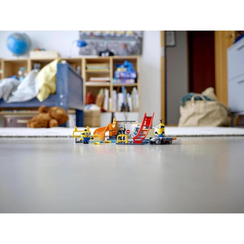 Stavebnice LEGO Minions in Gru's Lab (75546) o 87 dílcích potěší každého malého fanouška animovaných snímků od 4 let. Nechá totiž ožít potrhlé žluťásky Kevina a Otta z Mimoni 2: Padouch přichází (2022), jejichž figurky lze doplnit dalšími dílky, jako jsou 3 banány, šroubovák nebo sekyra. Mimoň Kevin se dívá do strany a Otto zase nasadil překvapený výraz, který zaručeně pobaví všechny děti. Navíc v tomto sestavitelném modelu laboratoře mohou pouštět postavičky dolů ze skluzavky, testovat s nimi prototyp nového vozidla na rampě či prozkoumávat propracované detaily této hračky. Vaše ratolest tak může naživo prožít nezapomenutelné scény na vlastní kůži nebo si vytvořit ojedinělou akci dle své fantazie.