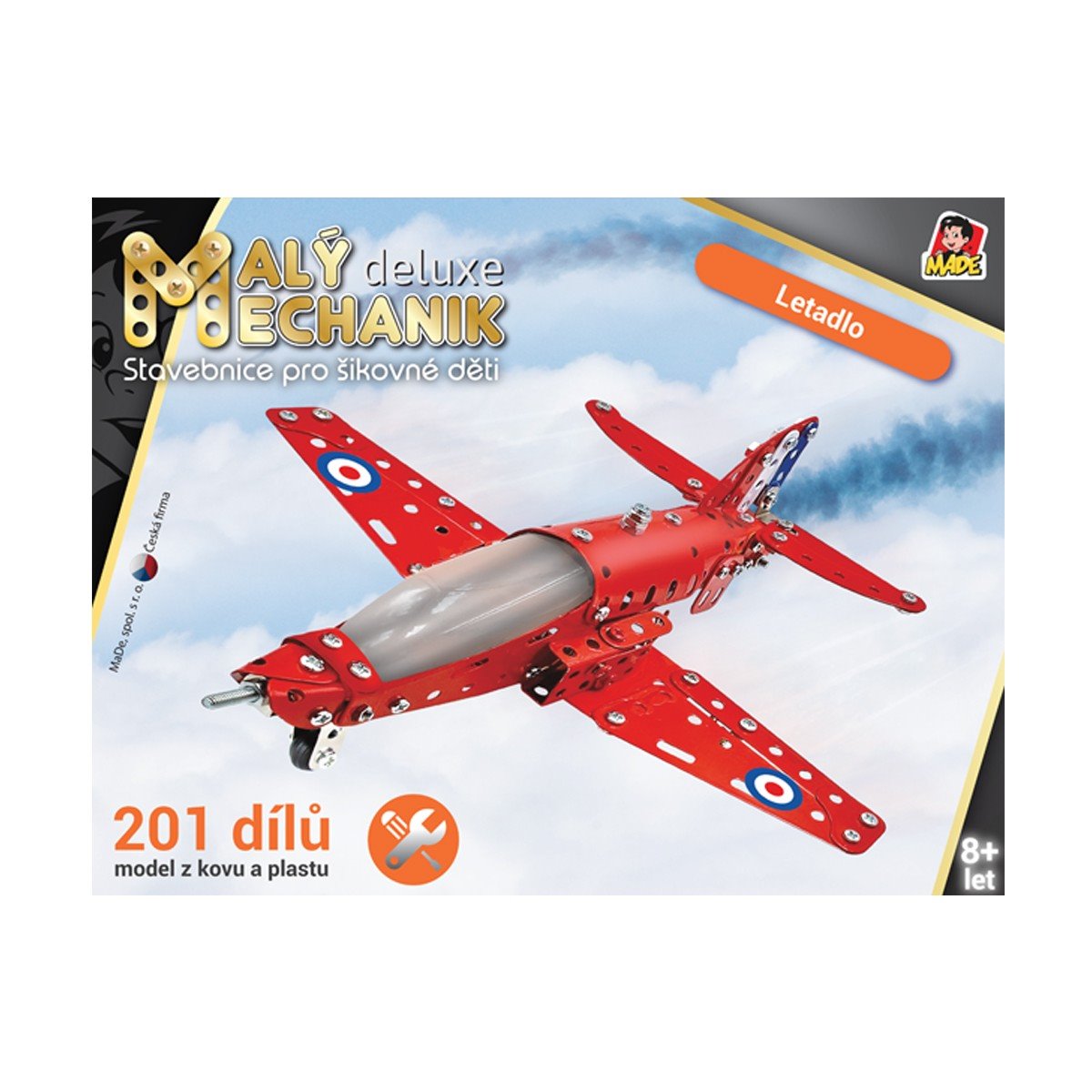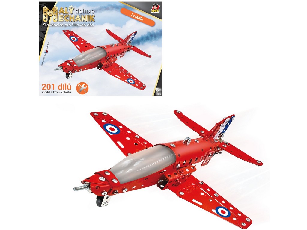 Postavte si se svými ratolestmi model letadla z řady Hrej si a tvoř, který si vystavíte doma na skříňku nebo na polici. Stavebnice Malý mechanik obsahuje celkem 201 dílků z kovu a plastu, které spojujete pomocí šroubů a matiček. Zabaví všechny děti od 8 let. Rozvíjí jejich motoriku, manuální zručnost a představivost. Při jejím sestavování se děti také učí trpělivosti, samostatnosti a trénují logické myšlení.