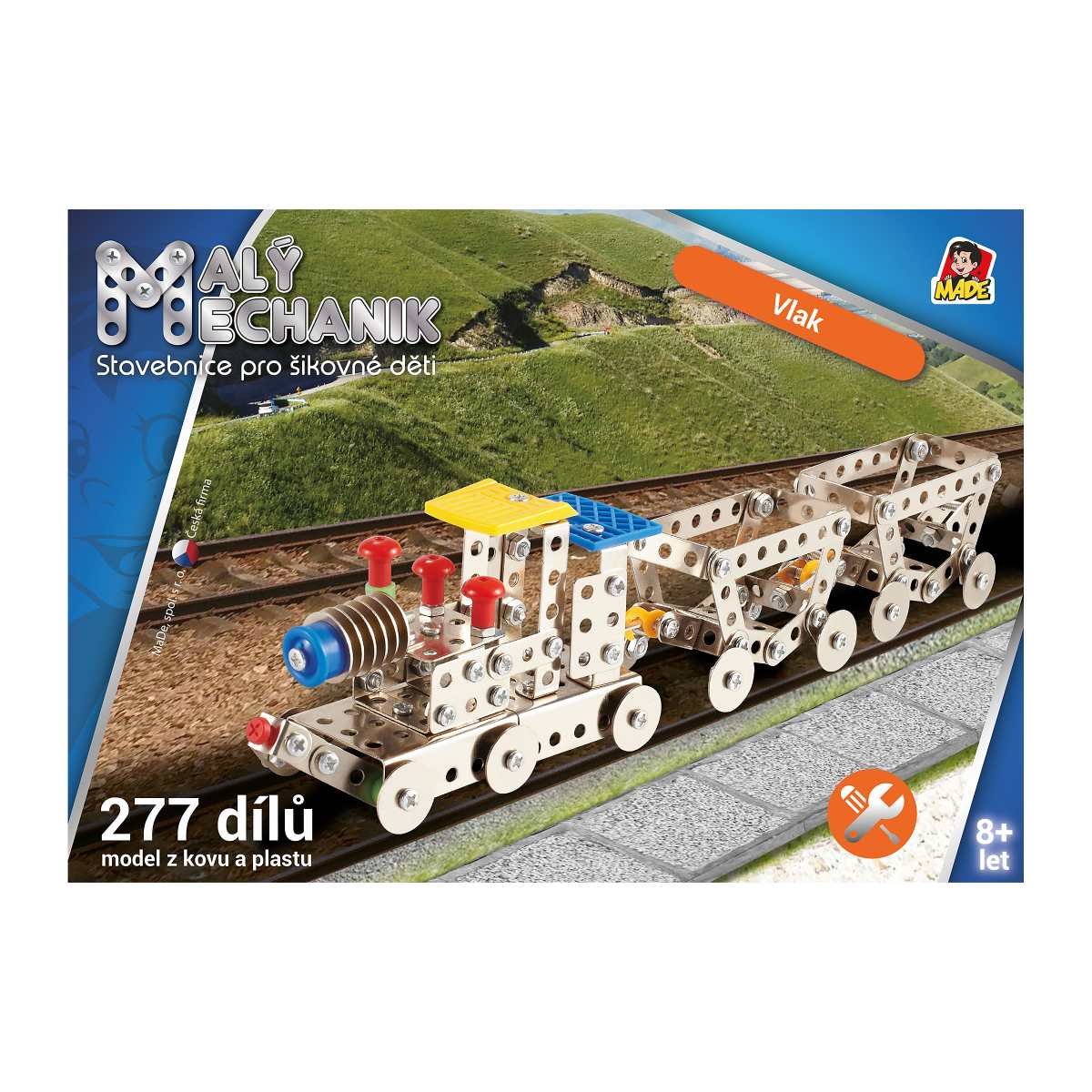 Postavte si se svými ratolestmi model vlakové soupravy z řady Hrej si a tvoř, který si vystavíte doma na skříňku nebo na polici. Stavebnice Malý mechanik obsahuje celkem 277 dílků z kovu a plastu, které spojujete pomocí šroubů a matic. Zabaví všechny děti od 6 let. Rozvíjí jejich motoriku, manuální zručnost a představivost. Při jejím sestavování se děti také učí trpělivosti, samostatnosti a trénují logické myšlení.