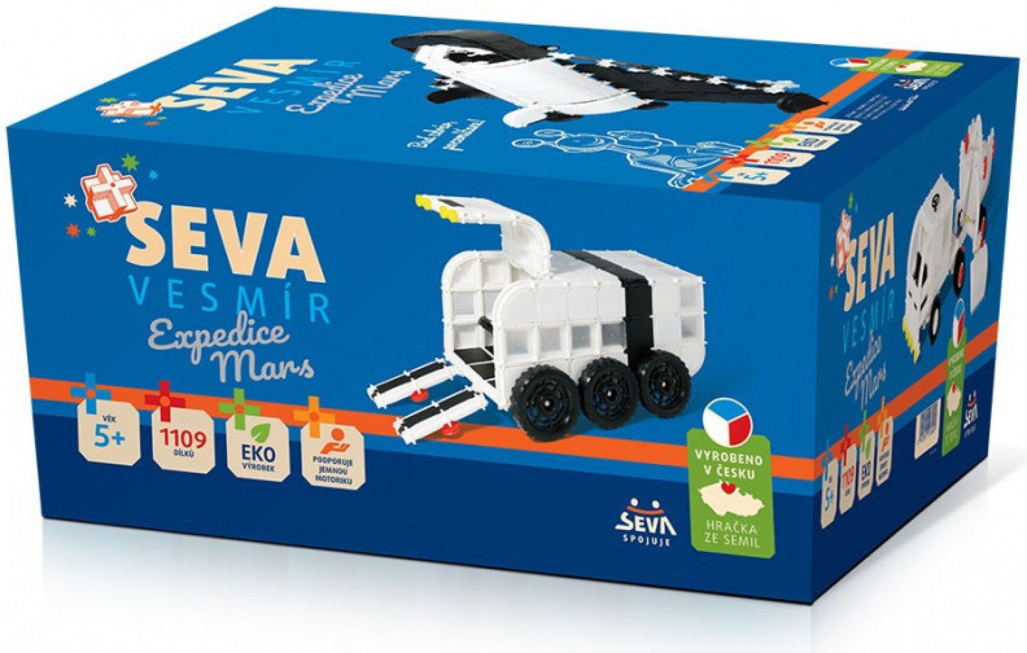 Stavebnice SEVA obsahuje celkem 1 109 dílků. Malé děti se naučí jednotlivé dílky spojovat. Starší potomci sestaví raketoplán, vesmírné vozidlo nebo vytvoří jiné věci podle návodu či podle své fantazie. Z jednotlivých dílků se dá postavit skoro vše. Vaše ratolest si během hraní rozvíjí kreativitu, manuální zručnost a trénuje mysl.