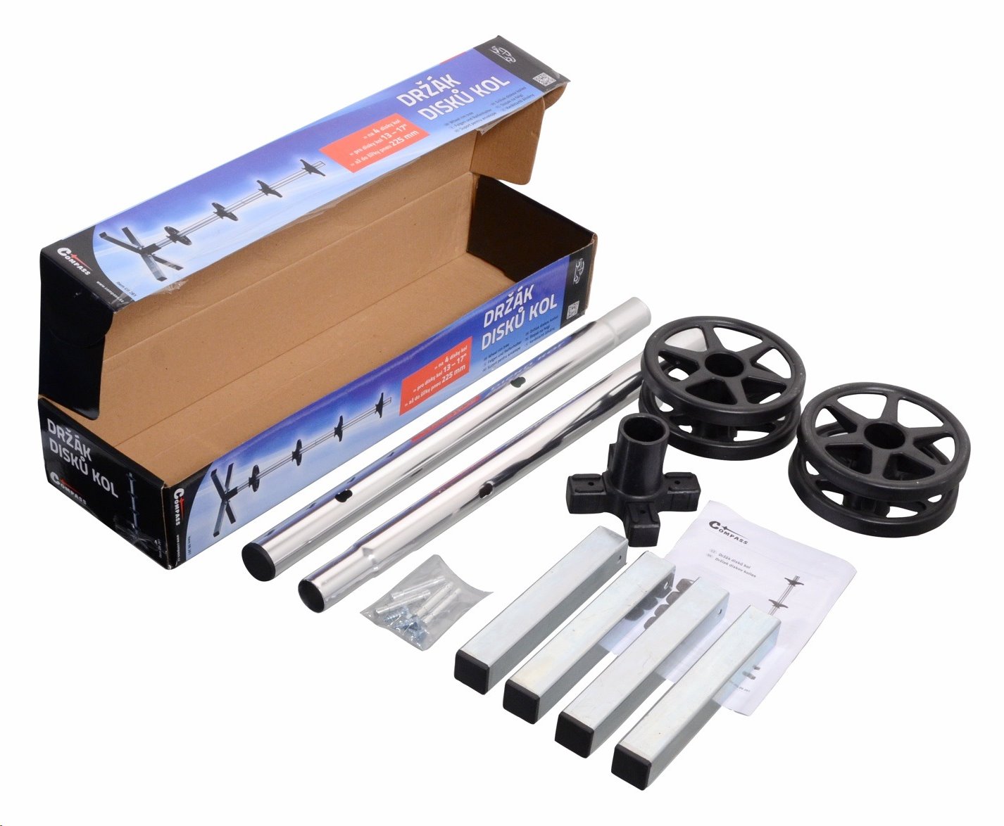 Držák disků kol je jednoduchým a praktickým řešením pro uskladnění právě nepoužívaných pneumatik. Držák je možné v případě potřeby snadno smontovat i rozmontovat. Navíc zabere jen velmi málo místa.