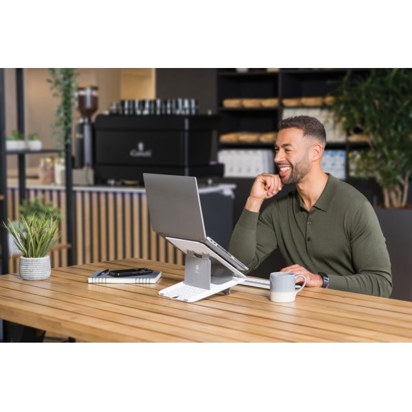 Bolí vás během práce na počítači šíje a krční páteř? Zajistěte si co největší pohodlí a podmínky pro plnění každodenních povinností. Umístěte svůj notebook na stojan Fellowes BREYTA. Nastavíte si u něj ideální výšku tak, aby byla obrazovka v úrovni vašich očí. Výběr máte celkem z 12 pozic. Kromě toho můžete stojan také naklonit nebo složit podstavec na plocho. Díky tomu sedíte rovně a uvolníte napětí ramen a krku.