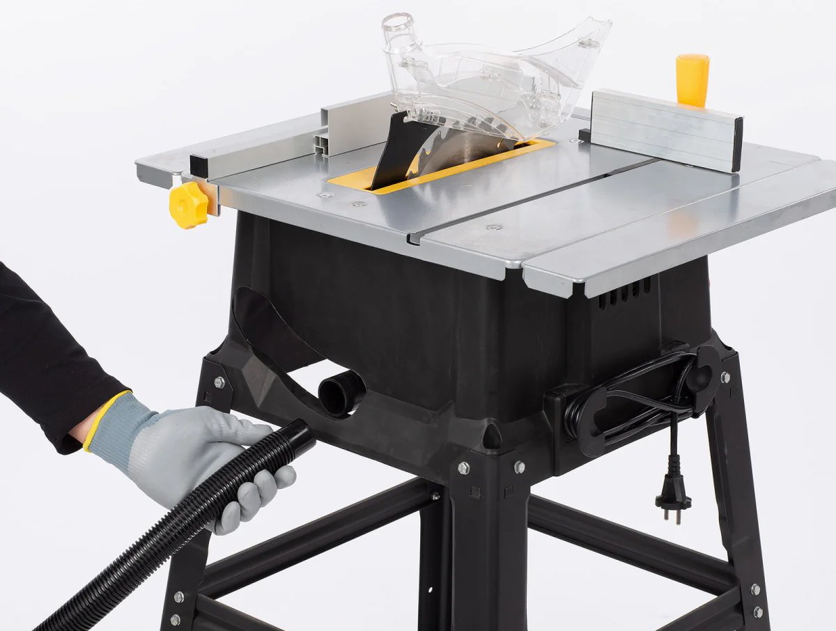 Pevný základní rám zajišťuje mimořádnou stabilitu při jejím používání. Nařezat můžete i velké kusy dřeva v pohodlné pracovní výšce 78 cm. Pila se postará o přesné paralelní řezy do dřeva až do tloušťky 7 cm a úhlové řezy až do hloubky 4,5 cm, a to díky vodítkům, které drží váš obrobek na místě pro dokonalou přesnost. Spolu se stolovou pilou získáte 2 nástavce, ochranný kryt a tlačnou tyč. Stačí vám tedy připojit vysavač a pracovní prostředí zůstane bez pilin.