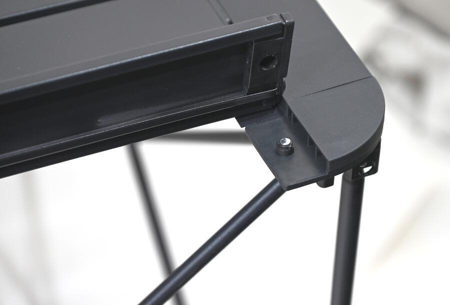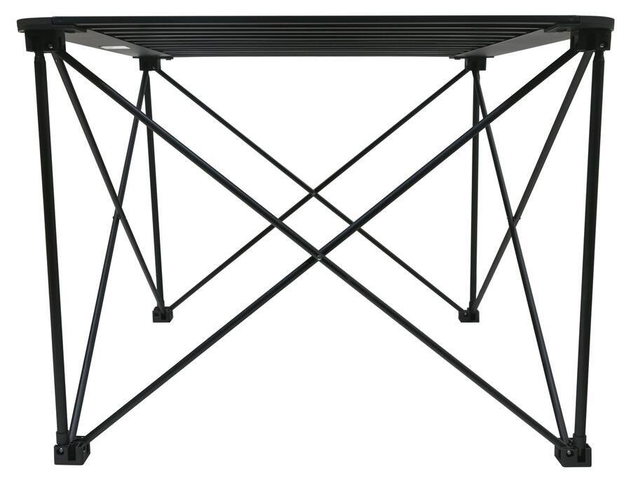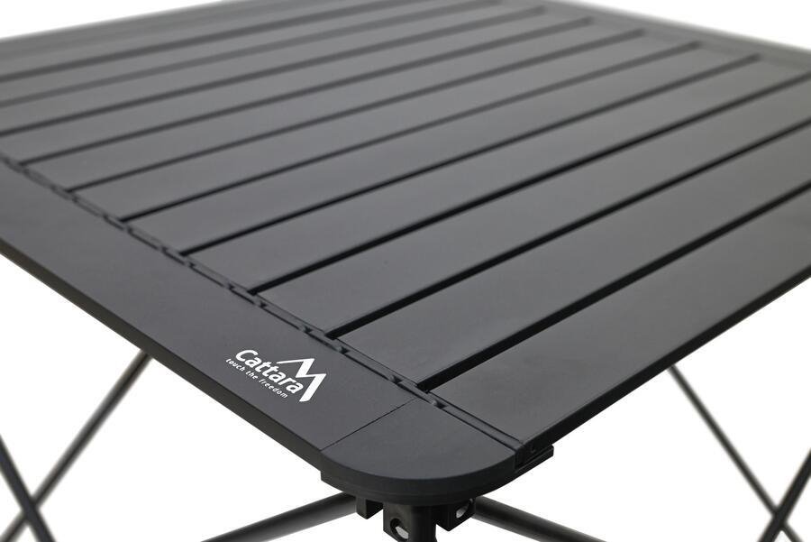 Ve spodní části nohou ocelové konstrukce najdete plastové patky. Zajišťují větší stabilitu stolku. Deska z lamel o rozměrech 70 x 70 cm vám zajistí dostatek prostoru na vaše věci. Odložíte na ni potraviny, nápoje nebo různé turistické potřeby.