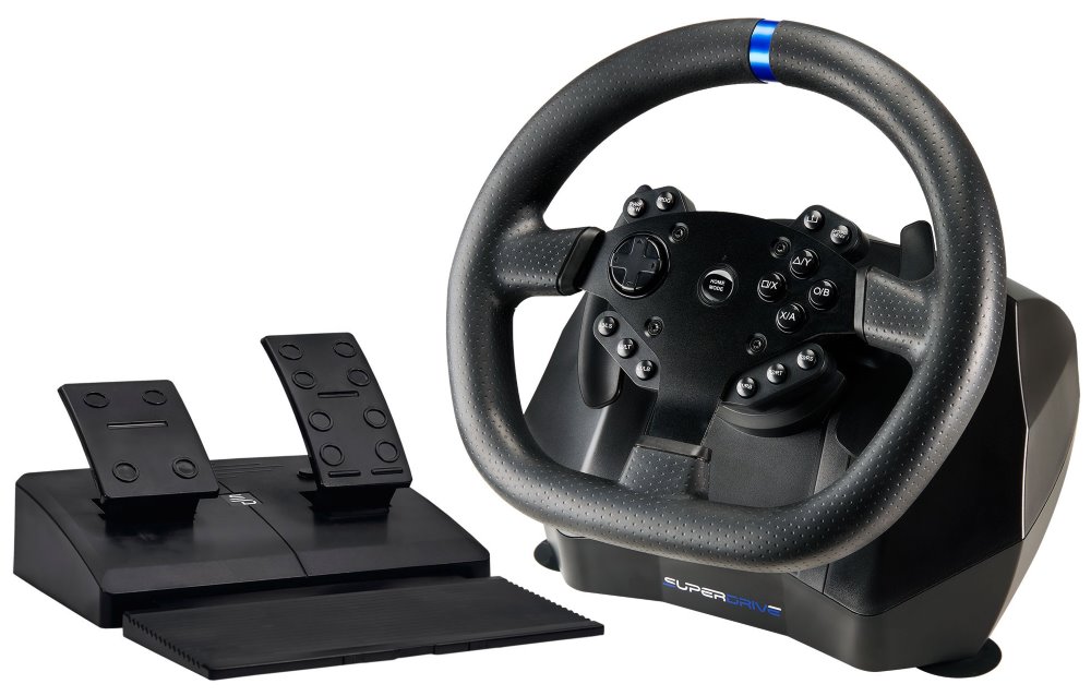 Volant s pedály pro PS4, Xbox One, Xbox X, Xbox S a PC. Volant SV950 nabízí až 900° úhel otáčení, který se přizpůsobí vašim jízdním návykům a poskytuje tak věrný závodní zážitek. Je vybaven řadicí pákou, duálním vibračním motorem a také protiskluzovým systémem pedálů. Je plně programovatelný a nabízí 3 úrovně citlivosti. Volant je vybaven přísavkami a lze jej snadno připevnit na rovný povrch. Zajisté potěší také konektor pro připojení sluchátek.