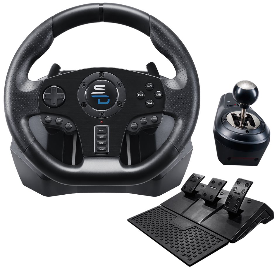 Volant s pedály a řadící páka pro PS4, Xbox One, Xbox X a Xbox S. Tento závodní volant je navržen tak, aby poskytoval věrný závodní zážitek. Je vybaven řadicí pákou, duálním vibračním motorem a také protiskluzovým systémem pedálů. Volant GS850-X vám nabízí 270° úhel otáčení, který se přizpůsobí vašim jízdním návykům. Je plně programovatelný a nabízí 3 úrovně citlivosti. Volant je vybaven přísavkami a lze jej snadno připevnit na rovný povrch.