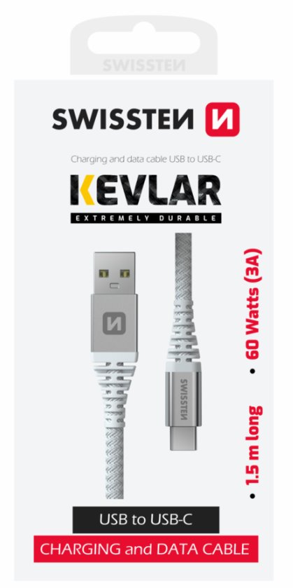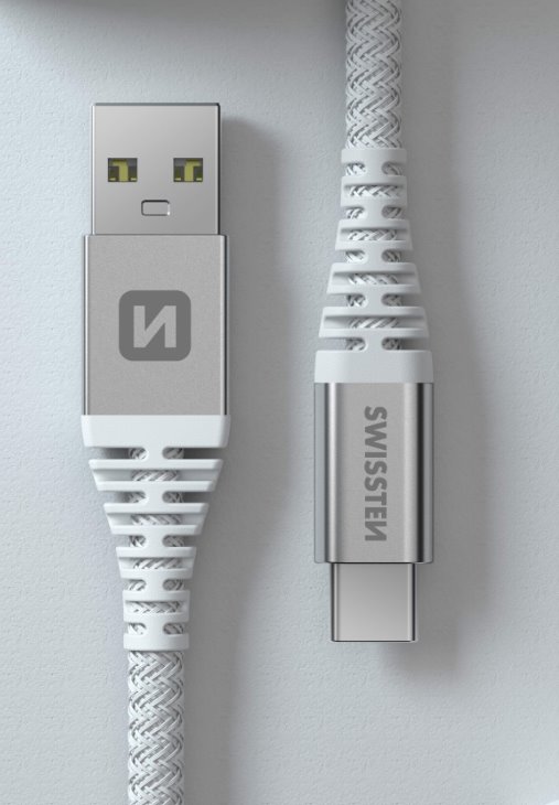 SWISSTEN DATOVÝ KABEL KEVLAR USB / USB-C 1,5 M BÍLÝ