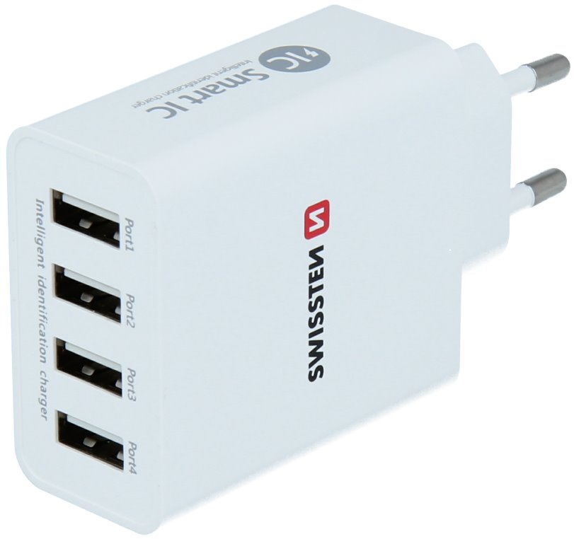 Síťový adaptér disponuje čtyřmi USB porty s celkovým výstupním proudem 5 A. Technologie Smart IC optimalizuje proces nabíjení.