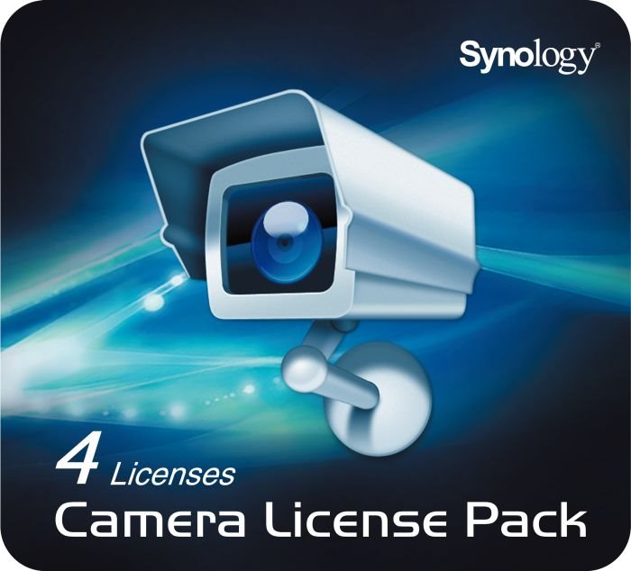 Synology Camera License Pack umožňuje zvýšit počet použitých IP kamer připojených pomocí SurveillanceStation. V tomto případě se jedná o 4 licence. V základu každého zařízení je licence pro jednu kameru. Počet maximálně možných připojenýchkamer se liší dle použitého modelu.