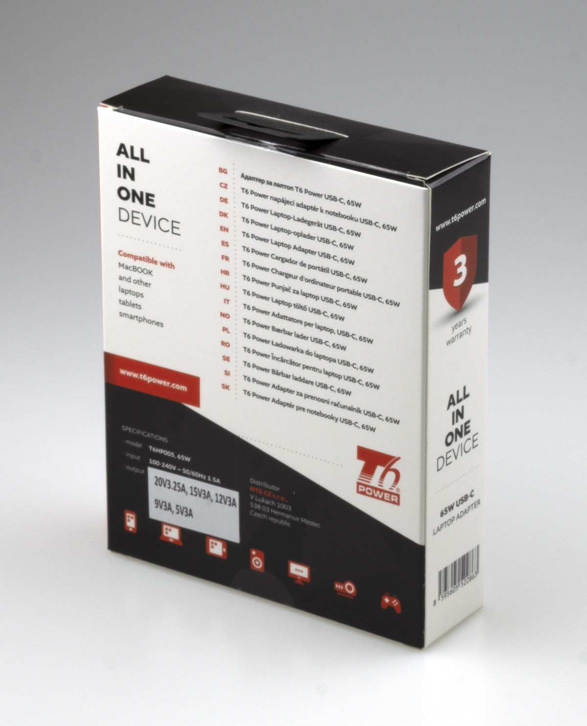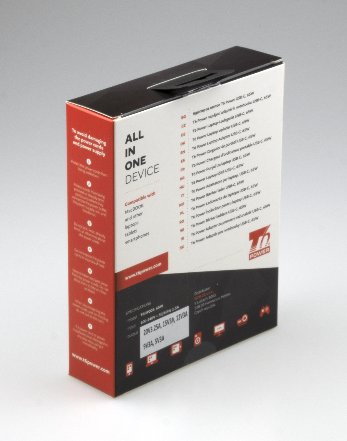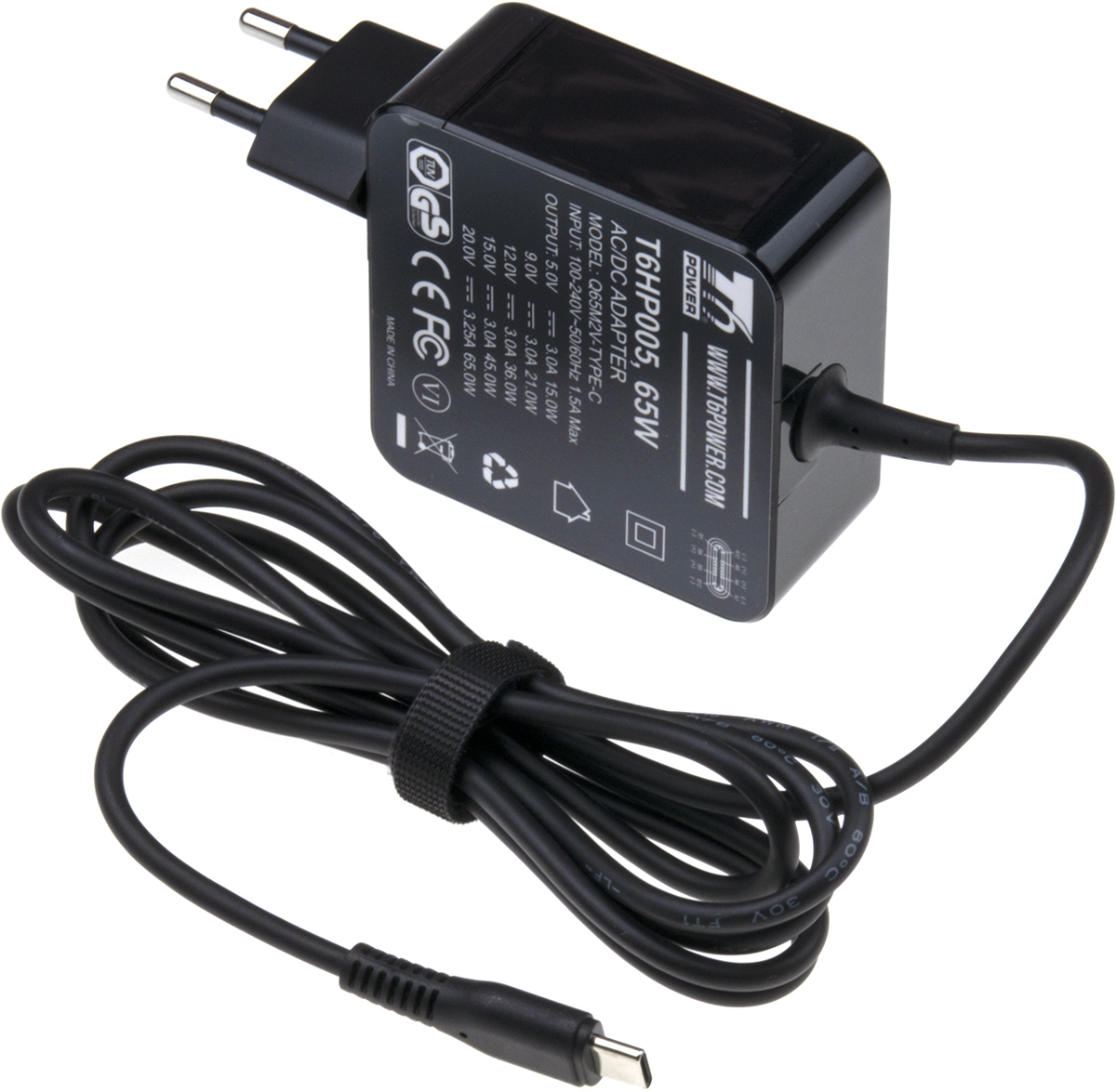 Univerzální adaptér značky T6 Power s výkonem 65 W je ideálním