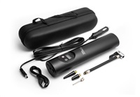 Kompaktní bateriový kompresor, vhodný pro použítí na cestách, dovolené nebo na závodech.
