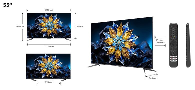 Elegantní a chytrý: luxusní bezrámečkový design řady TCL C65 PRO je doplněn o otočnou polohovací nohu stojanu. Můžete nastavit nohy směrem ven, aby pod televizí vznikl prostor například na soundbar, nebo je můžete nasměrovat dovnitř, což umožní umístění TV i na užší typy nábytku.