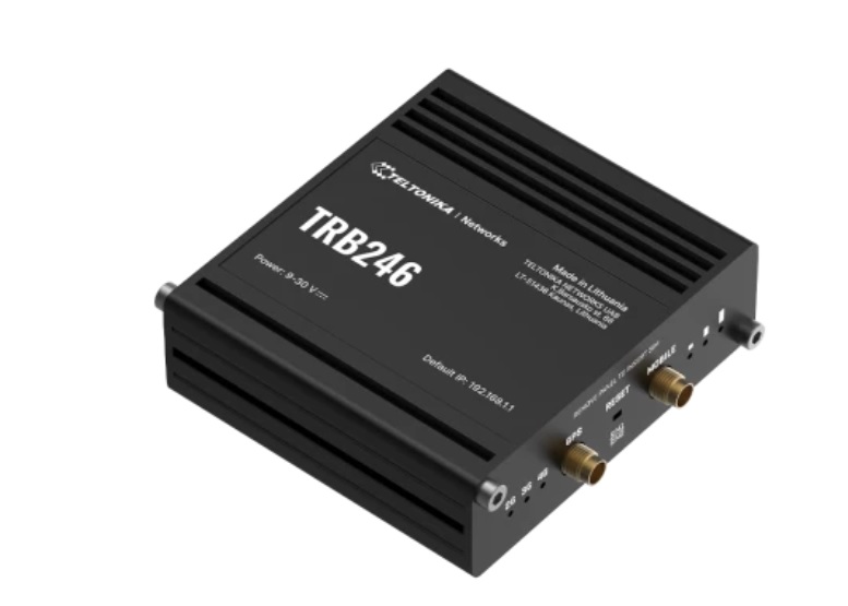 TRB246 je průmyslová 4G LTE brána vybavená I/O, RS232, RS485 a