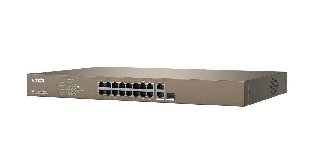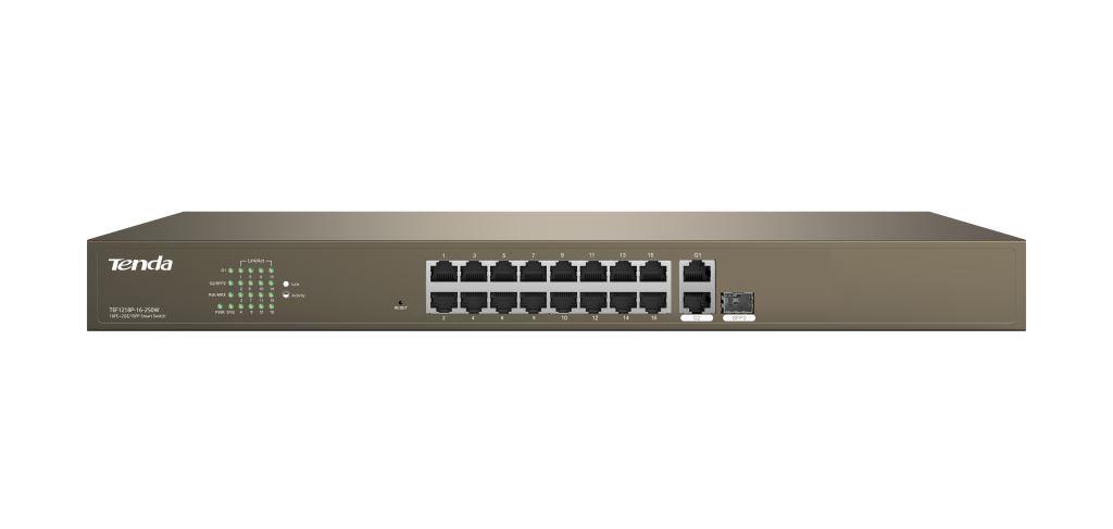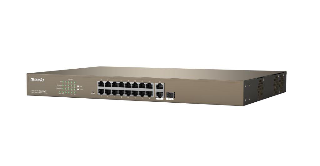 Tenda TEF1218P-16-250W PoE AT WebSmart switch - 16x PoE 100 Mb/s + 2xUplink 1Gb/s RJ45/SFP,PoE+ 230WTenda TEF1218P-16-250W PoE AT WebSmart switch - 16x PoE 100 Mb/s + 2xUplink 1Gb/s RJ45/SFP,PoE+ 230WTenda TEF1218P-16-250W PoE AT WebSmart switch - 16x PoE 100 Mb/s + 2xUplink 1Gb/s RJ45/SFP,PoE+ 230WTenda TEF1218P-16-250W PoE AT WebSmart switch - 16x PoE 100 Mb/s + 2xUplink 1Gb/s RJ45/SFP,PoE+ 230W