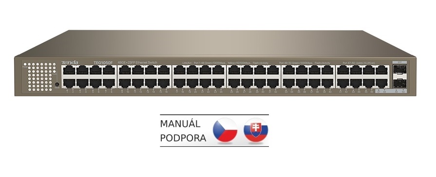 Tenda TEG1050F je 48mi portový Gigabitový Ethernet switch s 2x