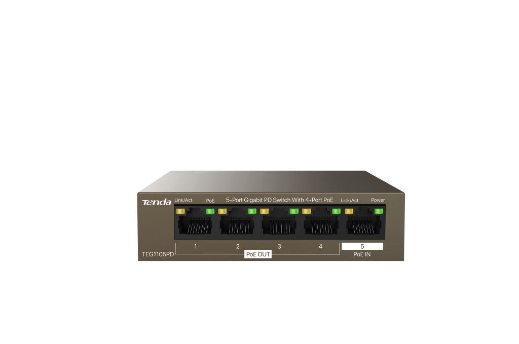 Tenda TEG1105PD je 5ti portový Gigabitový Ethernet PoE switch.