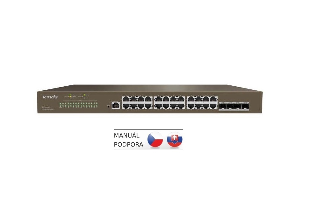 Tenda TEG5328F je Gigabitový L3 switch s 24x RJ45 a 4x SFP