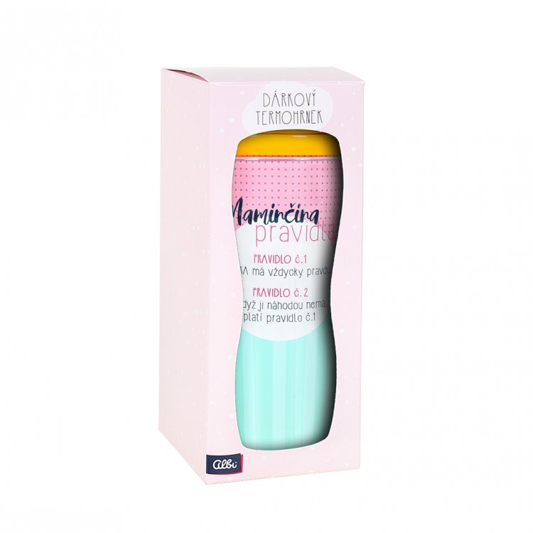 Udělejte své mamince radost a kupte jí k svátku, k narozeninám nebo jen jako poděkování, že ji máte ve svém životě, termohrnek s nápisem „Maminčina pravidla“ od značky Albi. Určitě si do něj ráda připraví svůj oblíbený čaj nebo kávu a vyrazí na výlet, za příbuznými nebo do práce. Termohrnek se vyrábí ve veselých barvách a hodí se na jakékoliv cesty. Jelikož je balený v puntíkaté krabičce, ušetříte peníze za nákup ozdobných balicích papírů.