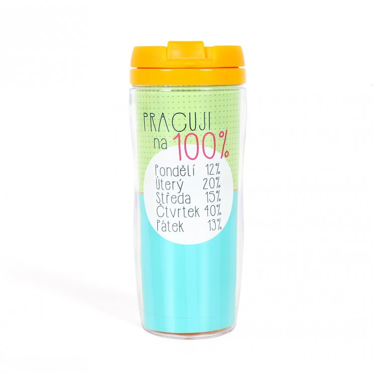 Udělejte svému blízkému radost a kupte mu k svátku, k narozeninám nebo jen jako poděkování, že ho máte ve svém životě, termohrnek s nápisem „Pracuji na 100%“ od značky Albi. Určitě si do něj rád připraví svůj oblíbený čaj nebo kávu a vyrazí na výlet, za příbuznými nebo do práce. Termohrnek se vyrábí ve veselých barvách a hodí se na jakékoliv cesty. Jelikož je balený v puntíkaté krabičce, ušetříte peníze za nákup ozdobných balicích papírů.