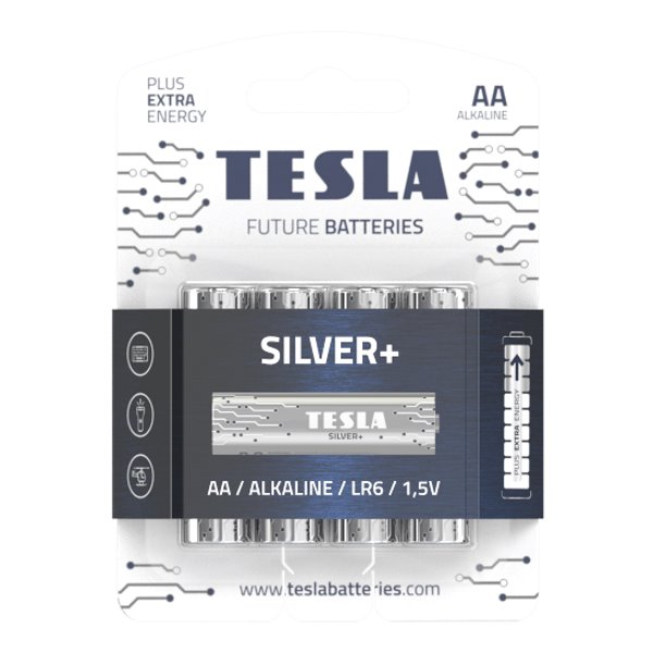 Alkalické baterie formátu AA s napětím 1,5 V. Řada SILVER+ zahrnuje alkalické baterie určené pro přístroje s dlouhodobým vysokým odběrem elektrické energie. Představuje ideální volbu pro elektronické hračky. Tuto řadu specifikuje dlouhotrvající výdrž baterie při stálém energetickém zatížení. V jednom balení jsou 4 kusy baterií.