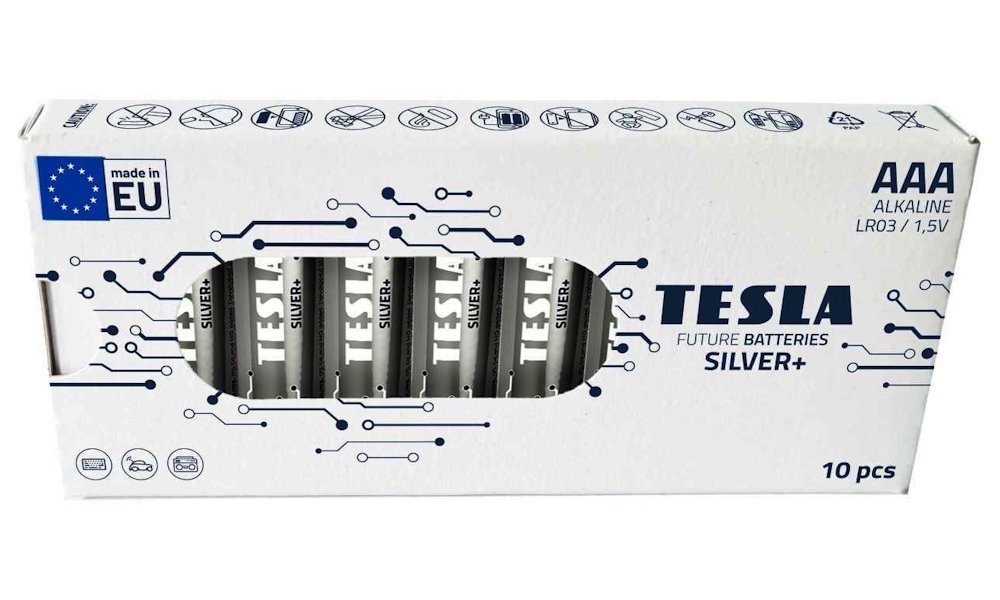 Alkalické baterie formátu AAA s napětím 1,5 V. Řada SILVER+ zahrnuje alkalické baterie určené pro přístroje s dlouhodobým vysokým odběrem elektrické energie. Představuje ideální volbu pro elektronické hračky. Tuto řadu specifikuje dlouhotrvající výdrž baterie při stálém energetickém zatížení. V jednom balení je 10 kusů baterií.