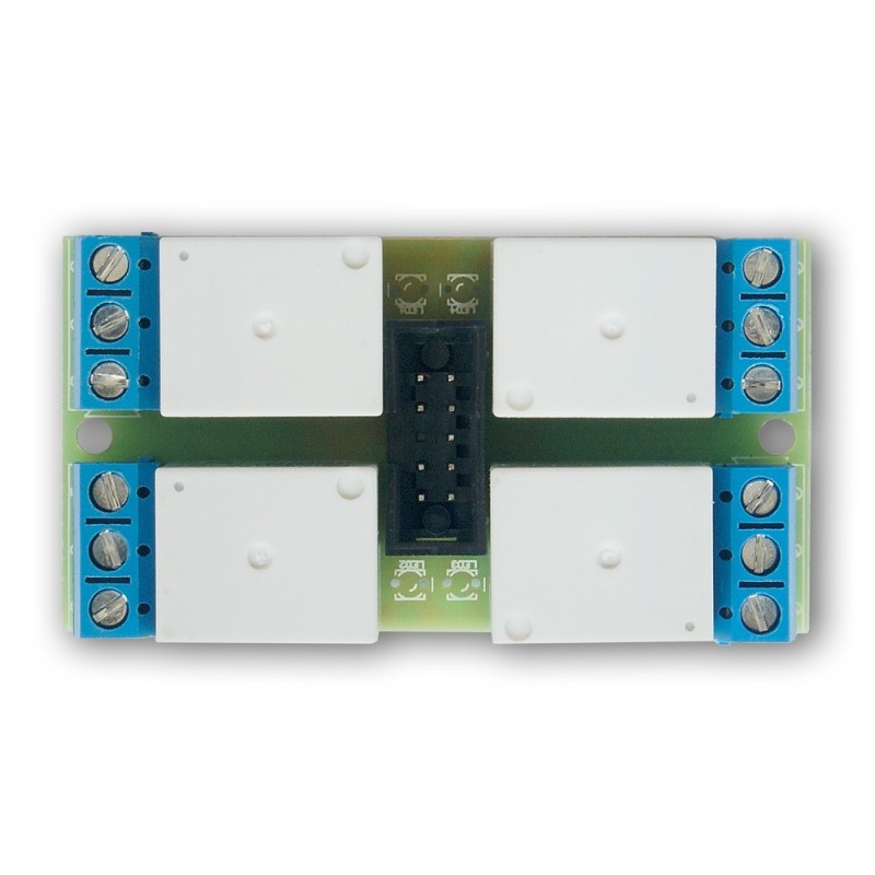 Rozšiřující modul s 4x relé pro LAN ovladač v2.5 i v3 umožňuje spínat proudy 10A na 230VAC nebo 15A na 24VDC. Rozšiřující modul k produktu LAN ovladač přidává další čtyři relé pro rozšířenou logiku řízení vašeho systému. Po připojení dodávaným kabelem o délce 10 cm je možné relé ovládat a programovat z rozhraní LAN ovladače.