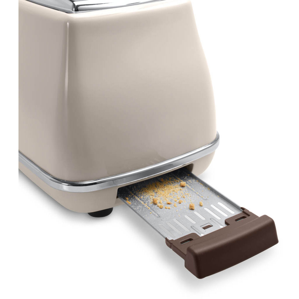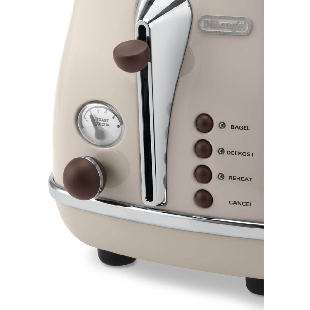 Topinkovač v retro designu značky DeLonghi hravě připraví 2 tousty najednou a zaujme vás i svým lakovaným tělem z nerezové oceli. Přístroj vám umožňuje nastavit stupeň opékání podle vašich preferencí. Díky pozici "extra zdvih" nabízí velmi jednoduché vyjímání malých krajíčků chleba. Velice praktický je i nástavec na pečivo a táckem na drobky pro snadnou údržbu. Toaster nabízí funkce jako například rozmrazování, ohřátí a funkci opékání z jedné strany.