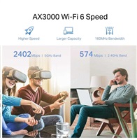Dual Band WiFi 6 - Separates 5 GHz (2402 Mbps) and 2.4 GHz (574 Mbps) WiFi bands for faster speeds and greater capacity with the latest technology