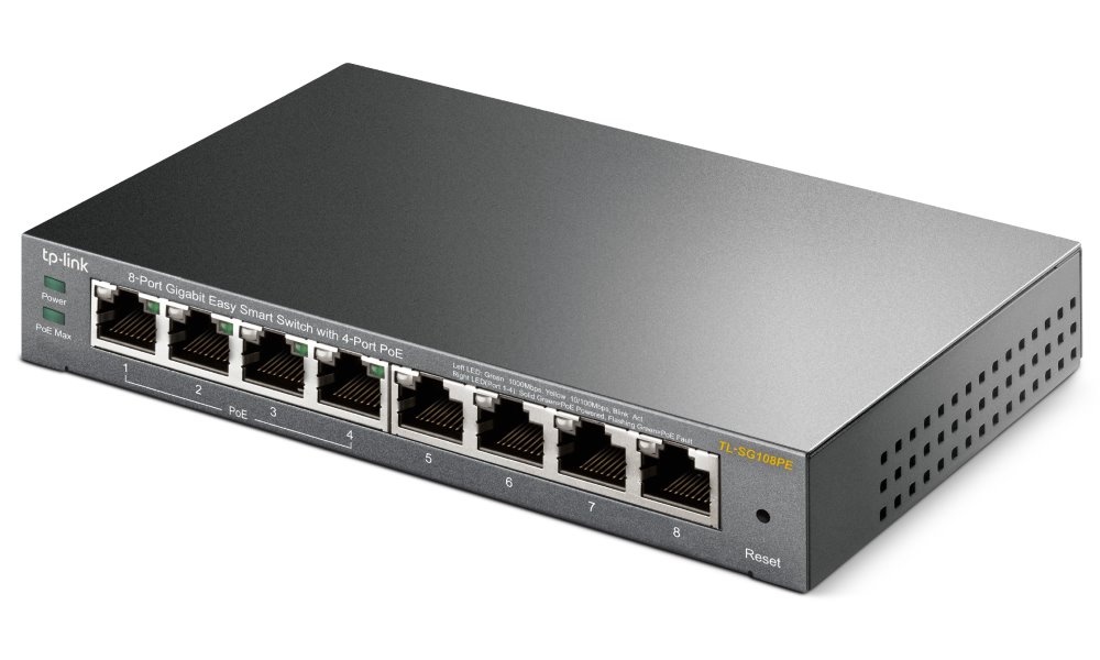 TL-SG108PE je 8mi-portový gigabitový Easy smart switch se 4mi porty