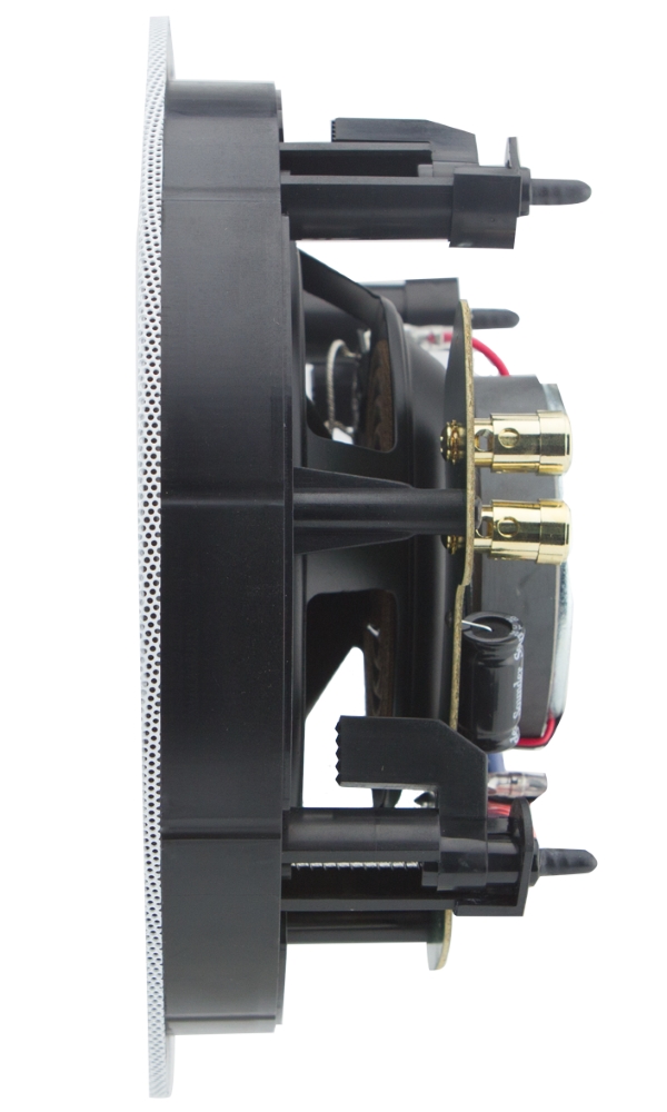 Dvoupásmový bezrámový reproduktor s výkonem 120 W a polypropylenovou membránou, která minimalizuje nežádoucí převýšení na horním okraji zvukového pásma. Průměr basového reproduktoru je 8" a na jeho středu je umístěn 1" výškový reproduktor, který lze částečně nasměrovat. Součástí balení je pouze kulatá krycí mřížka (Frameless Ghost - Grill).