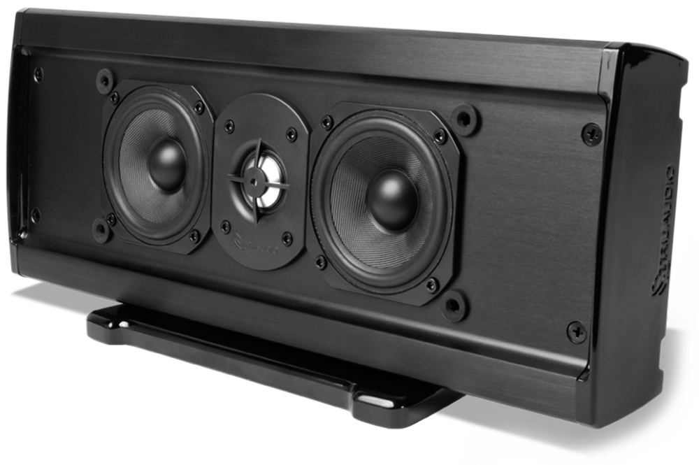 Ultratenký soundbar s výkonem 75 W poskytuje díky 3,5" basovým reproduktorům a 1" výškovému reproduktoru dokonale vyvážený zvuk. Extrudovaný hliníkový kryt lze připevnit na stěnu jak svisle, tak vodorovně, nebo lze využít stojan (SLIM-STAND, není součástí balení).