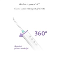 Hlavice trysky je otočná o 360 stupňů, takže snadno vyčistí všechna zákoutí vašich úst.
