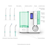 Ústní sprcha disponuje odnímatelnou nádržkou a víkem. Vodu tak snadno pod kohoutkem doplníte.